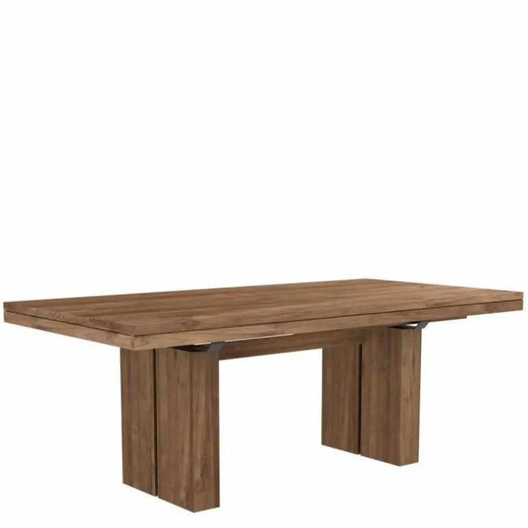 De tafel is gemaakt van massief eiken of teak fineer. Eiken wordt door Ethnicraft standaard voorzien van een hardwax olie, die het hout in grote mate beschermt tegen vloeistoffen. Desondanks dient u vlekken direct op te doen met een lichtvochtige doek. Na verloop van tijd is het verstandig de tafel opnieuw te behandelen met de olie. Deze kunt u direct bij bestellen. Het teak is onbewerkt, maar bevat van zichzelf al veel oliën. Indien u het hout toch wilt behandelen, kunt u hiervoor de oculto olie bij bestellen.r