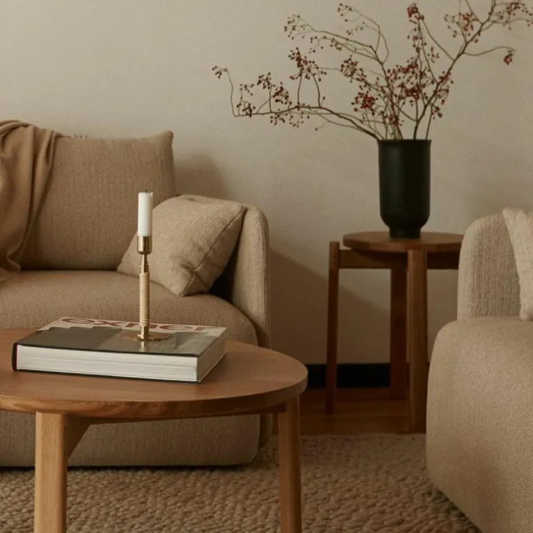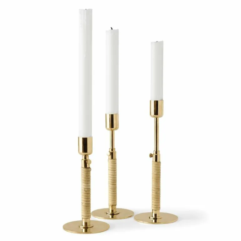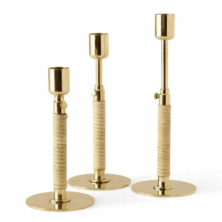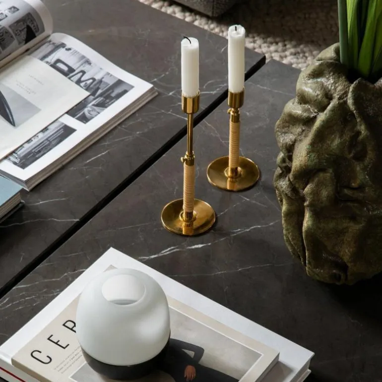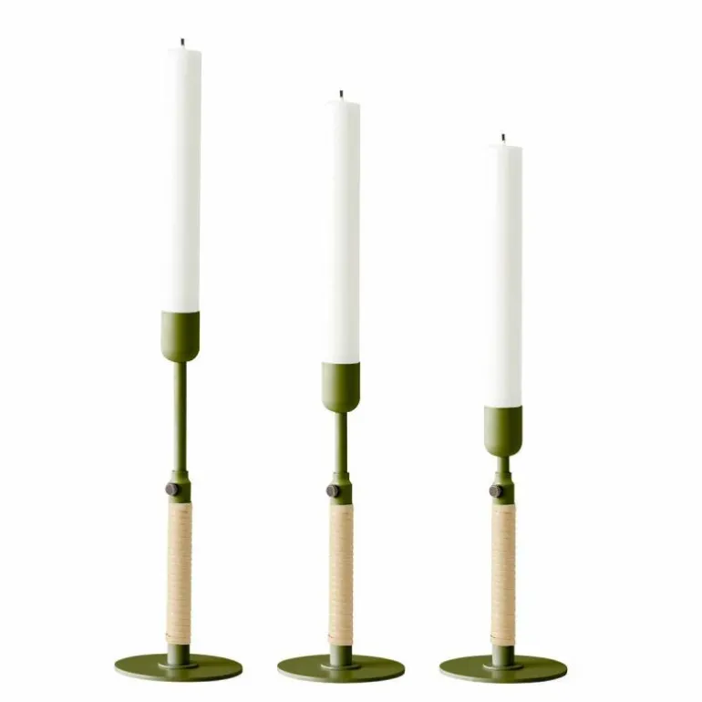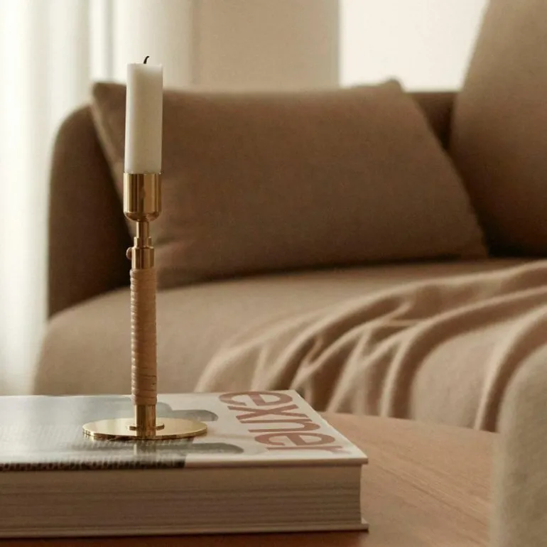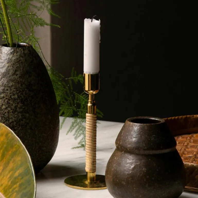 De Duca Kandelaar is gemaakt van gepolijst messing dat aan de onderzijde strak is omhuld met rotan. Daarnaast heeft u ook de keuze uit een stalen variant in een olijfgroene kleur. Deze combinatie van uiteenlopende materialen zorgt voor een romantische en klassieke uitstraling en voegt een intiem en warm gevoel toe aan ieder interieur.