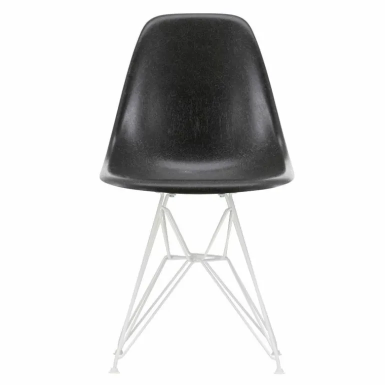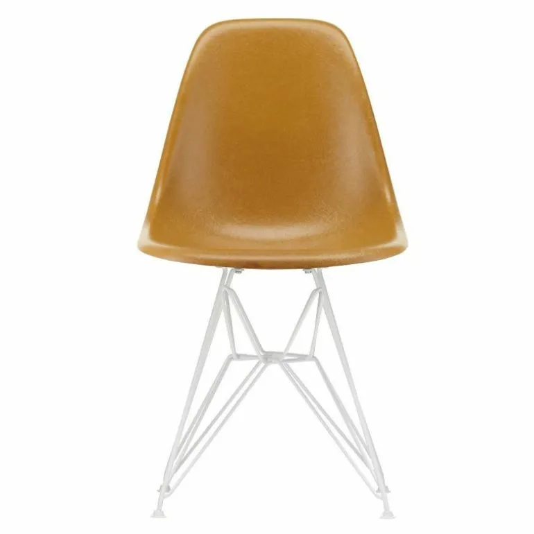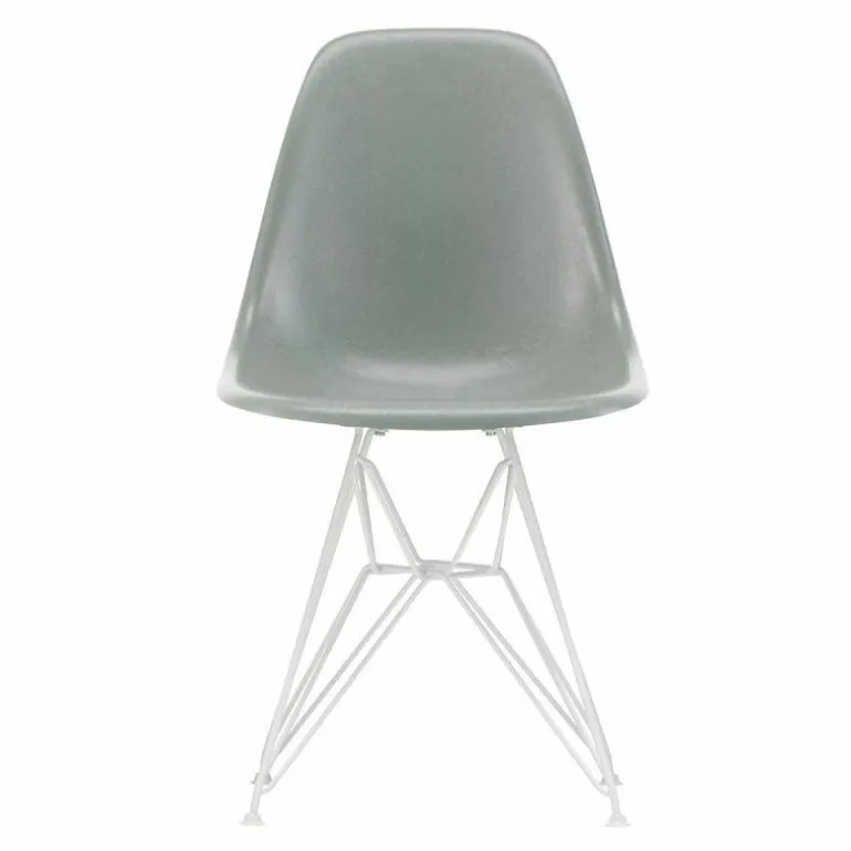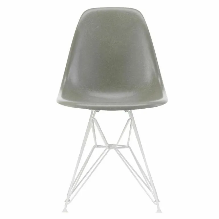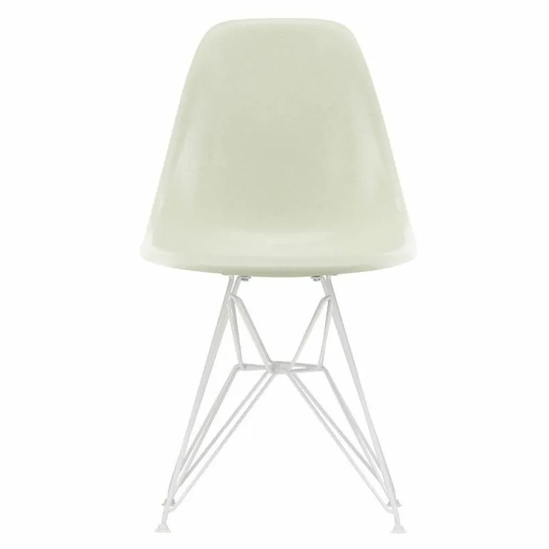 De Eames Fiberglass Chair DSR met vierpootsonderstel in witte poedercoating is 46.5 centimeter breed, 83 centimeter hoog en 55 centimeter diep. De zithoogte bedraagt 43 centimeter. Standaard wordt de stoel voorzien van witte viltglijders.