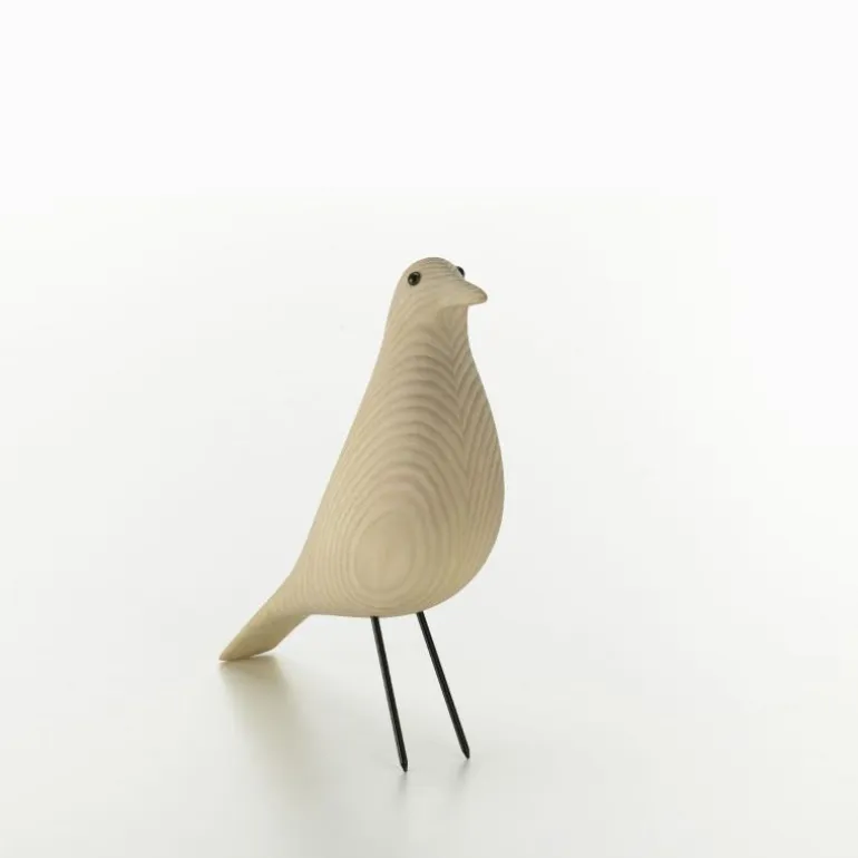 Het ontwerp van de Eames House Bird kenmerkt zich door zijn sculpturale eenvoud en subtiele elegantie. De lange staart vormt een visueel tegenwicht voor het ogenschijnlijk fragiele evenwicht op de draadstalen poten. Het kleine, glanzende kraaloog fungeert als verfijnd detail dat het geheel een expressief karakter verleent. Dankzij deze uitgebalanceerde vormgeving past de vogel moeiteloos binnen zowel klassieke als moderne interieurs en behoudt het object een blijvende aantrekkingskracht door zijn ingetogen uitstraling.