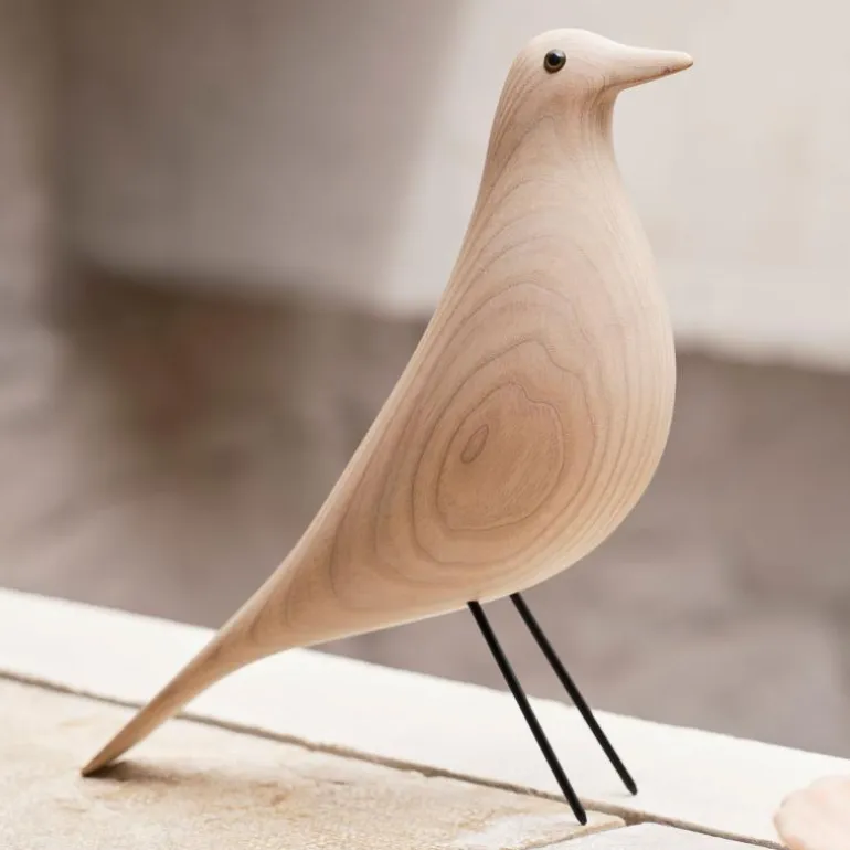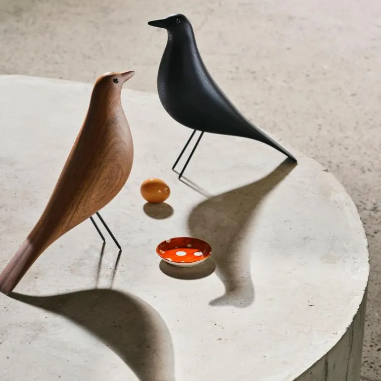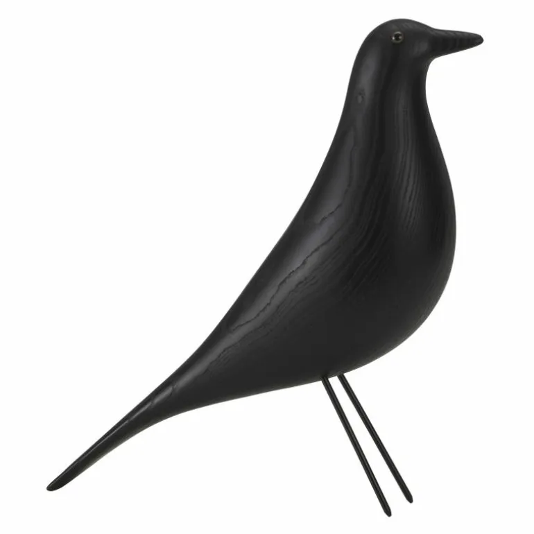 De uitvoering in zwart gelakt massief elzenhout onderstreept het tijdloze karakter van het ontwerp. Het hout is afkomstig uit duurzaam beheerde bossen in Polen, terwijl de poten zijn vervaardigd uit slank maar sterk draadstaal. Met een hoogte van 27,6 centimeter, een lengte van 27,8 centimeter en een breedte van 8,5 centimeter heeft de Eames House Bird een formaat dat opvalt zonder dominant te zijn binnen het interieur.