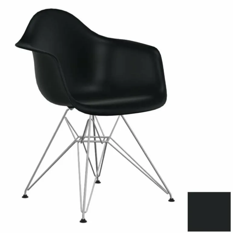 Door de eenvoudige en organische vorm is de Plastic Armchair inmiddels het archetype geworden onder de stoelen met een vaste zitschaal en een variabel onderstel. r
