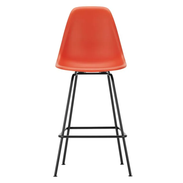 Het ontwerp maakt deel uit van de bredere Eames Plastic Chair-collectie, die wereldwijd wordt gewaardeerd om de tijdloze vormtaal en innovatieve materiaaltoepassing. De barkruk is licht van gewicht, wat het verplaatsen eenvoudig maakt, en behoudt ondanks de ranke constructie zijn stabiliteit. De keuze voor duurzame materialen en een solide afwerking verzekert een lange levensduur, waardoor de Eames Plastic Stool een investering vormt in zowel design als gebruikscomfort.