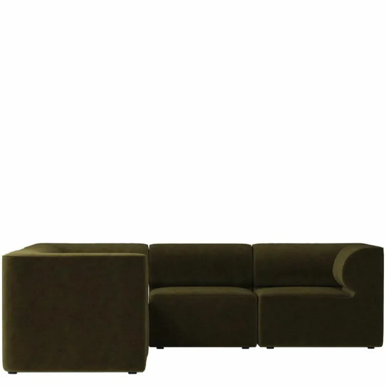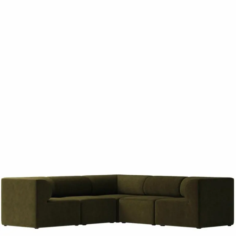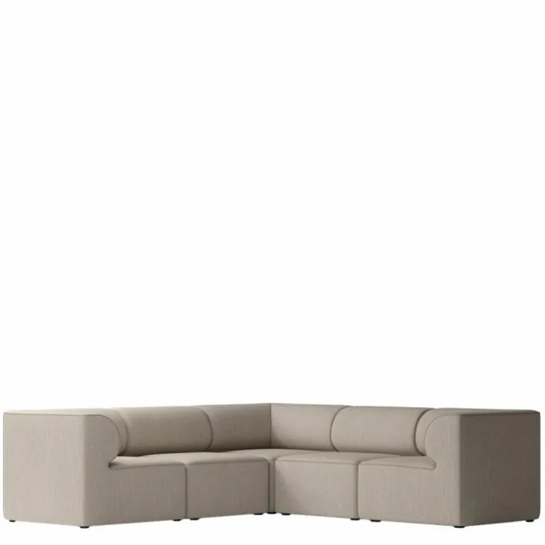 Met de losse elementen zijn verschillende combinaties te maken, zo veel als dat de creativiteit toelaat. Om de keuze voor een samenstelling wat makkelijker te maken, heeft Menu verschillende vooraf geselecteerde combinaties uitgebracht. Een knusse tweezitter, een gezellige 3-seater of zeeën van ruimte op een 5-zits bank, voor iedere behoefte is een uitkomst. De Eave Modular 5-zits bank bestaat uit een linker en een rechter hoekelement (b. 86 x h. 70,5 x d. 86 cm.) en twee open elementen (b. 75 x h. 70,5 x d. 86 cm.). De bank heeft een totale breedte van 247 centimeter. r