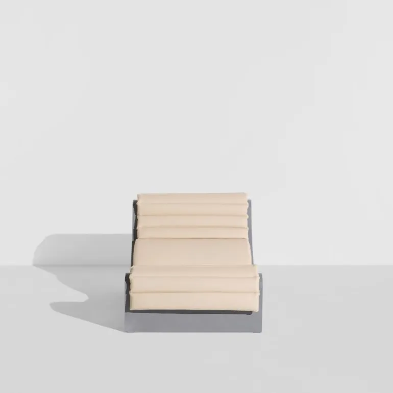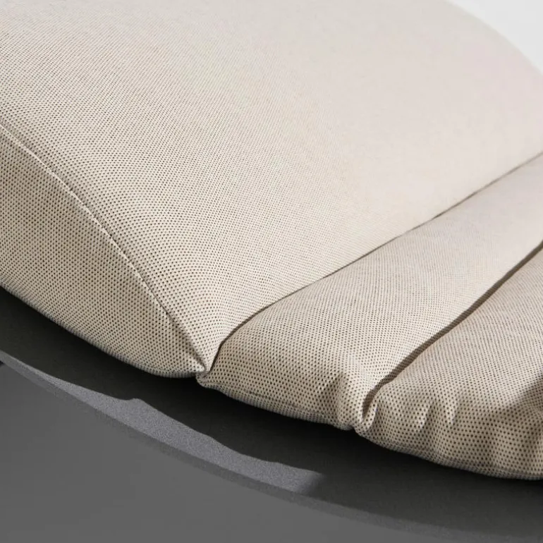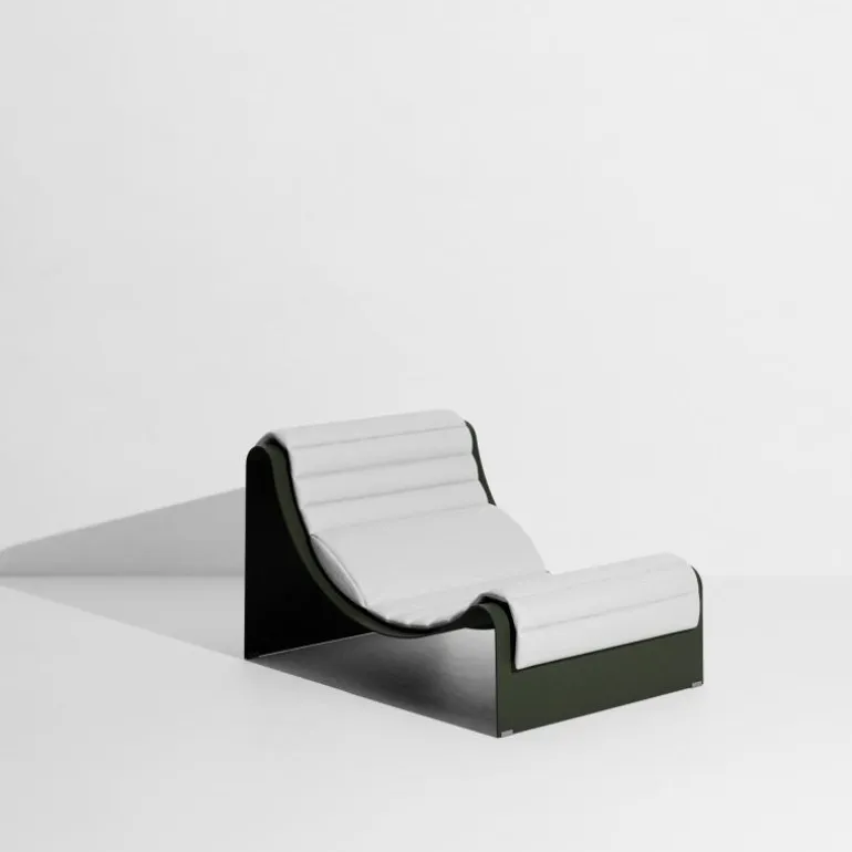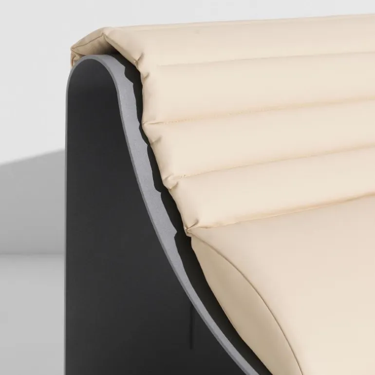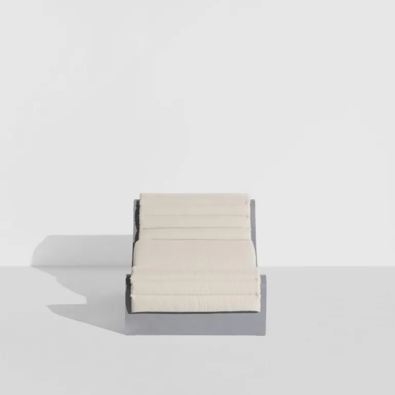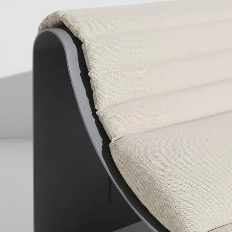 De constructie is uitgevoerd in aluminium en afgewerkt met een matte poedercoating die bestand is tegen water en UV-straling. Dit maakt het daybed niet alleen onderhoudsvriendelijk, maar ook bijzonder duurzaam. Het materiaal behoudt zijn kleur en kwaliteit onder diverse weersomstandigheden, waardoor het zowel binnen als buiten jarenlang inzetbaar blijft. De stevige basis biedt stabiliteit, terwijl de vorm uitnodigt tot ontspannen gebruik.