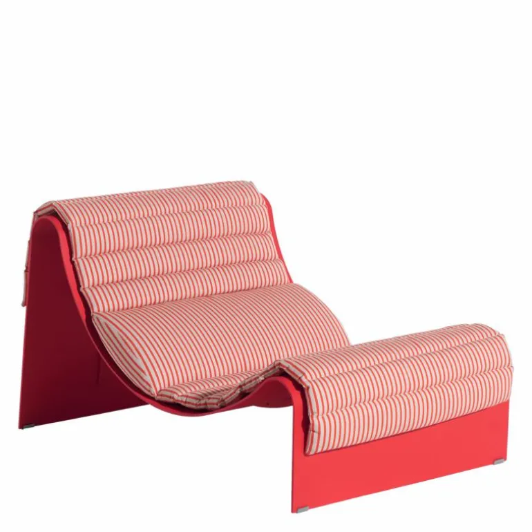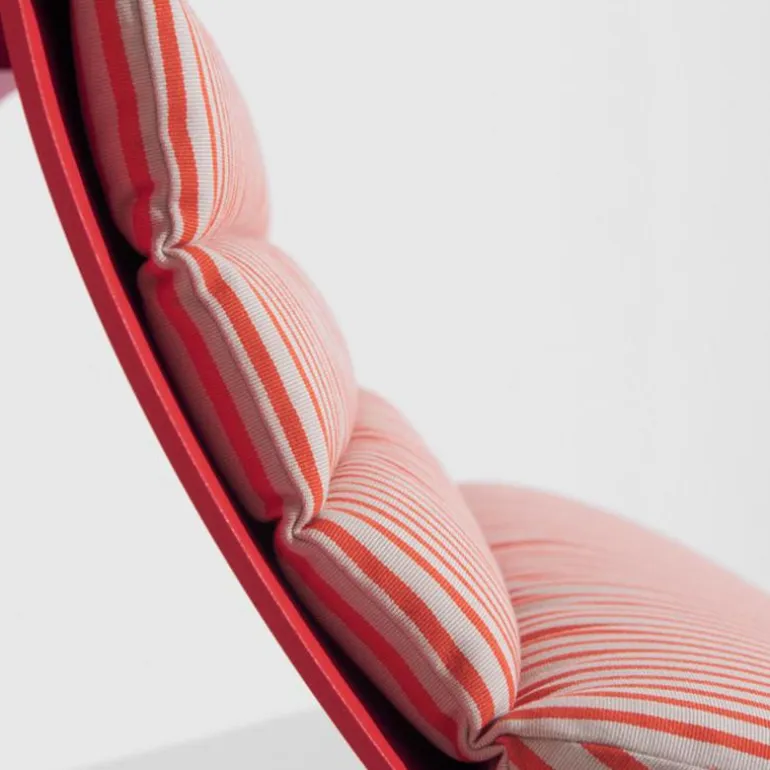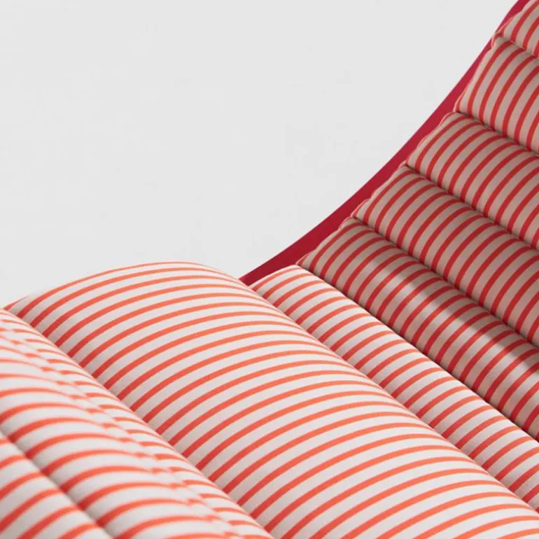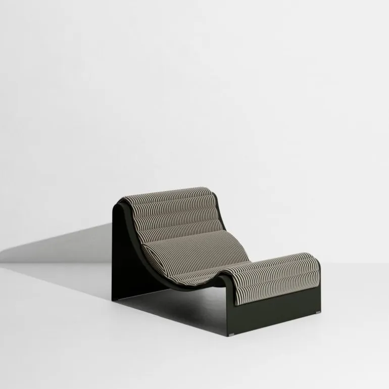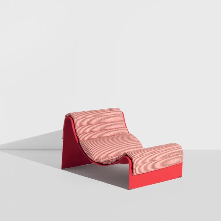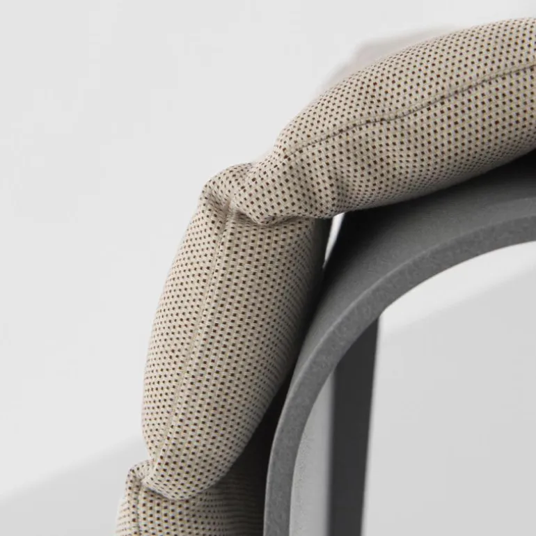 De constructie is uitgevoerd in aluminium en afgewerkt met een matte poedercoating die bestand is tegen water en UV-straling. Dit maakt het daybed niet alleen onderhoudsvriendelijk, maar ook bijzonder duurzaam. Het materiaal behoudt zijn kleur en kwaliteit onder diverse weersomstandigheden, waardoor het zowel binnen als buiten jarenlang inzetbaar blijft. De stevige basis biedt stabiliteit, terwijl de vorm uitnodigt tot ontspannen gebruik.