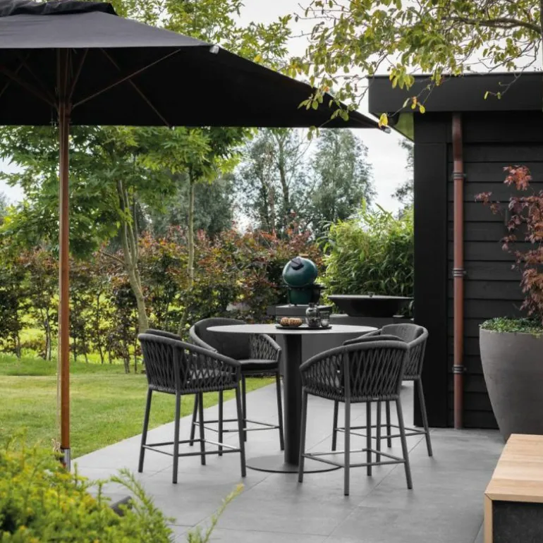 De parasol wordt exclusief voet geleverd, maar kan geplaatst worden in verschillende parasolvoeten uit de collectie van Borek. Neem hiervoor contact op met onze interieuradviseurs of kom een kijkje nemen in onze designwinkels. Dan kijken we graag mee naar de mogelijkheden.