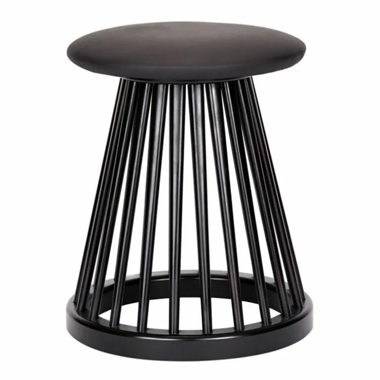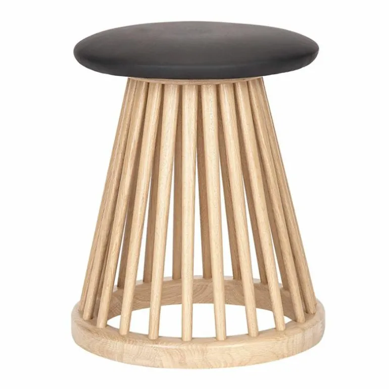 Fan is gemaakt van hout en is verkrijgbaar in de kleuren zwart en naturel. De Fan Kruk heeft een zwart leren zitting.