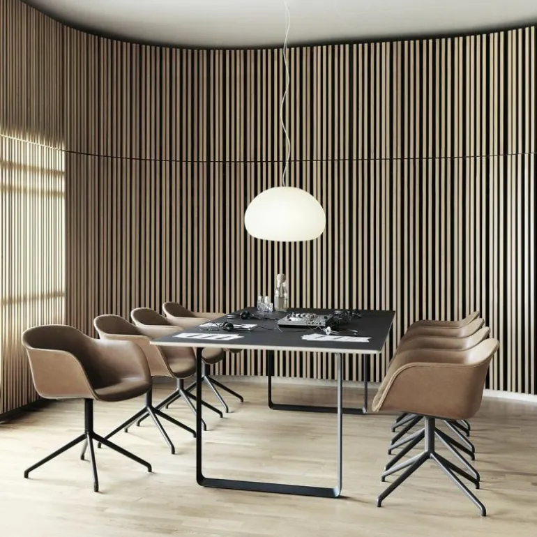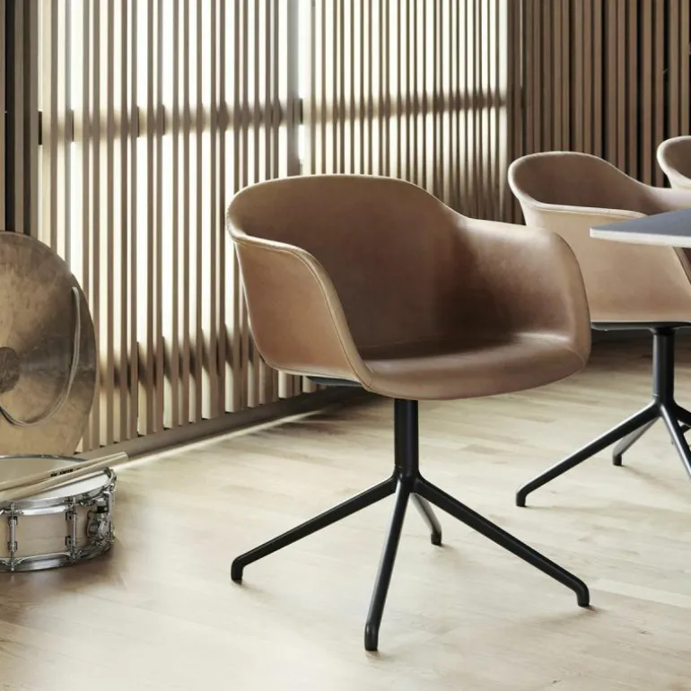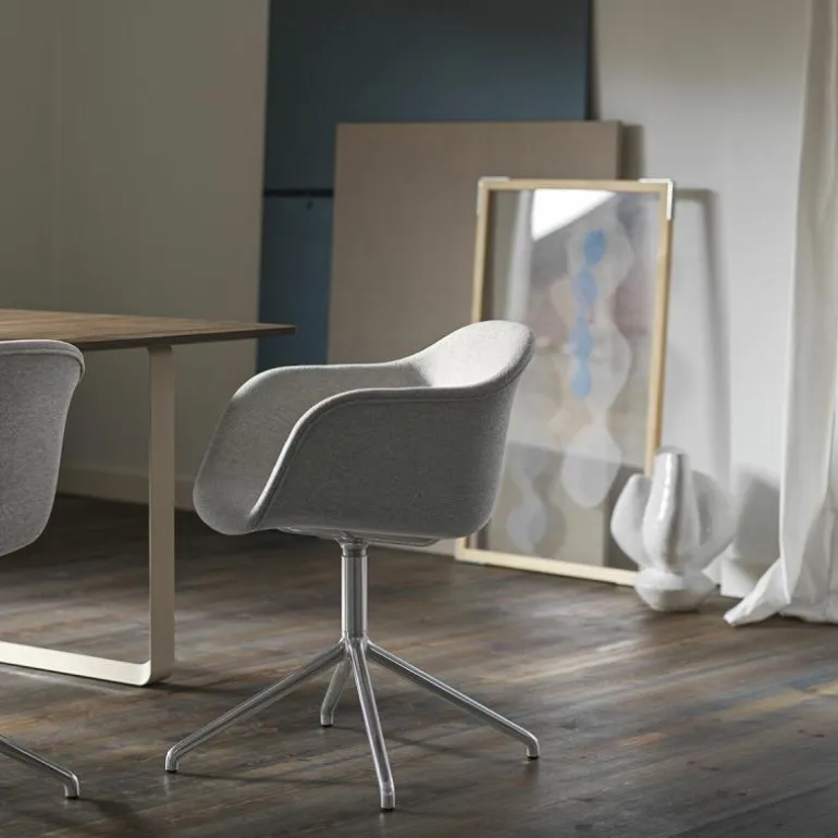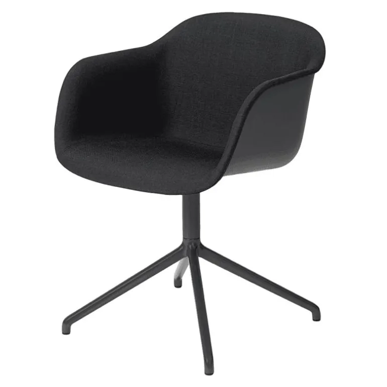 Één van Fiber’s bijzonderheden is de samenstelling van de kuip welke is gemaakt van een composiet uit houtvezels en kunststof. Milieuvriendelijk, 100% recyclebaar en dankzij zijn zachte stoffering uiterst comfortabel. Het onderstel van de stoel is gemaakt van staal en afgewerkt met een poedercoating. r