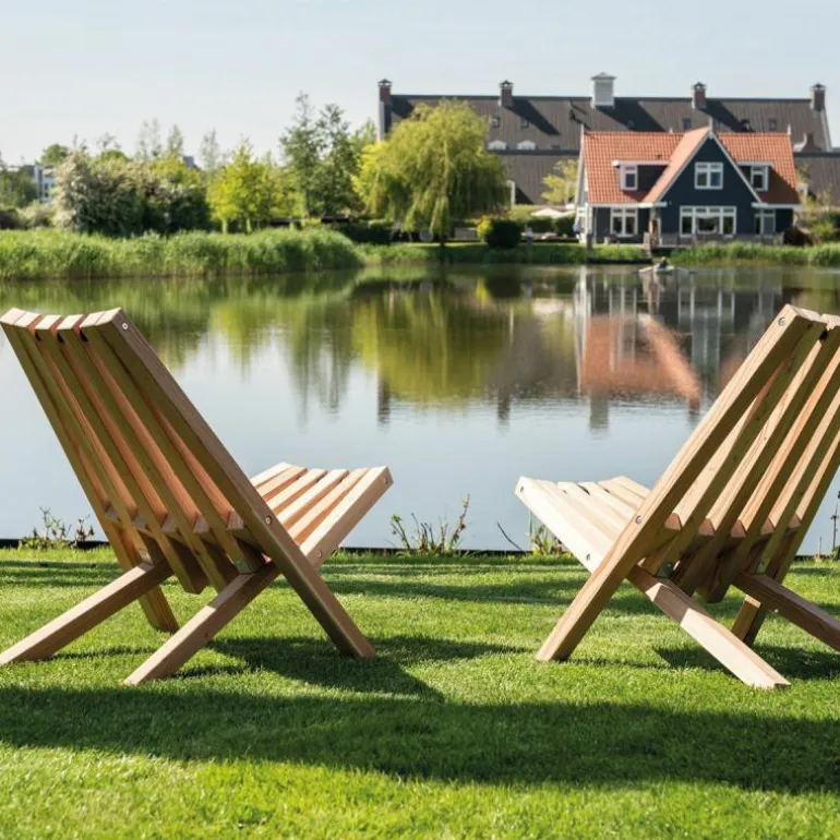 De Weltevree Fieldchair Stoel is een ontwerp van Floris Schoonderbeek. Heerlijk achterover zitten doet u in deze loungestoel. Hij is ontworpen vanuit de behoefte aan authenticiteit. Zo is Floris Schoonderbeek van mening dat het in de drukke digitale wereld af en toe nodig is om gewoon even neer te ploffen en terug te gaan naar de basis. Met de Fieldchair zoekt u na een lange dag een rustig plekje op om even te relaxen. De inklapbare stoel is gemakkelijk mee te nemen en in het winterseizoen eenvoudig op te hangen aan de lus. Zo blijft hij droog en blijft het hout langer mooi. Het design van de stoel bestaat uit verticale balken van Hollands Lariks hout. Dit hout zal naar verloop van tijd door blootstelling aan weersomstandigheden vergrijzen. Om dit tegen te gaan kunt u de stoel behandelen met beits. De stoel is 60 centimeter breed, 86 centimeter hoog en 74 centimeter diep. Hij kan per stuk of per set van twee besteld worden. Voor de koudere dagen kunt u meteen een schapenvacht van Weltevree mee bestellen, extra warm en comfortabel!r