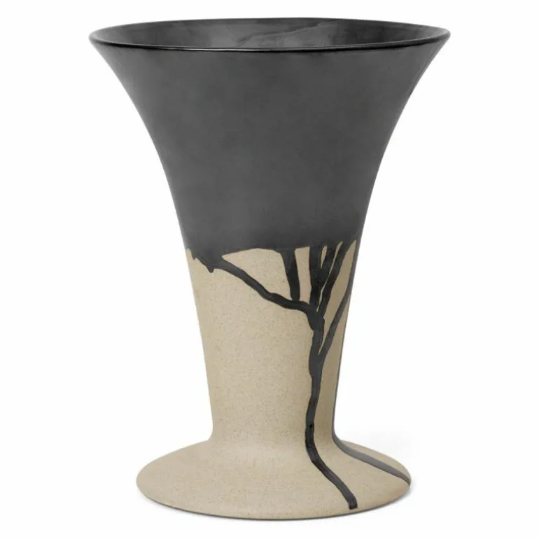 De Flores Vaas is gemaakt van porselein en is aan de binnenkant volledig geglazuurd. De buitenkant is voorzien van een spatpatroon dat met de hand is aangebracht. Dit maakt elke vaas uniek en zorgt voor het speelse en levendige karakter. De Flores Vaas heeft een diameter van 18 centimeter en een hoogte van 23 centimeter.