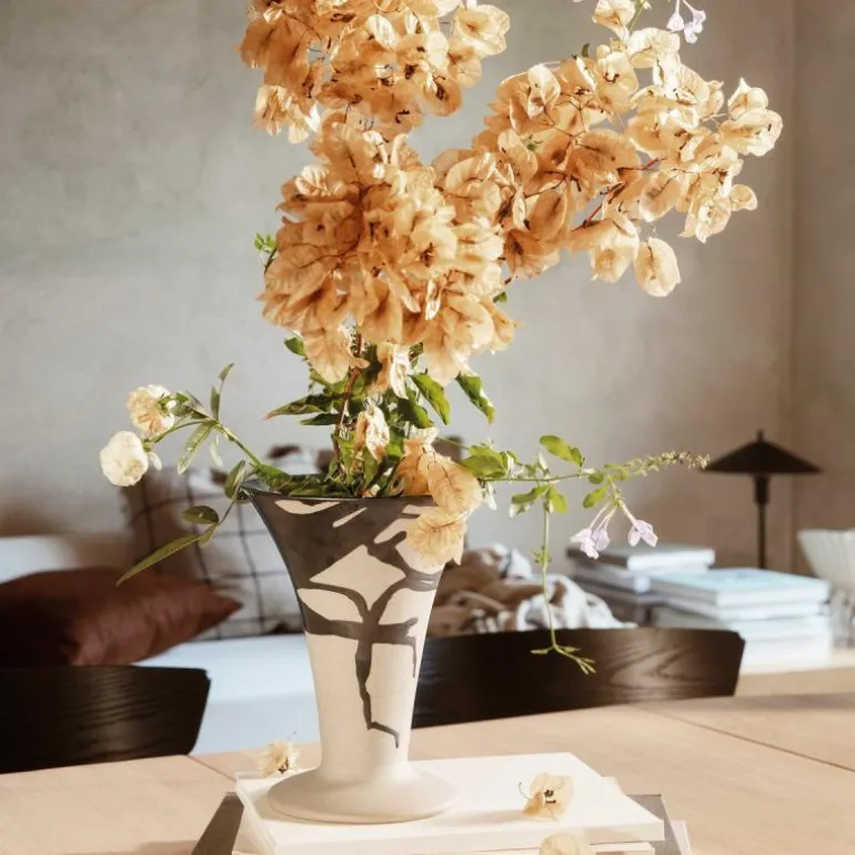 De Ferm Living Flores Vaas is een ontwerp van Trine Andersen en is geïnspireerd op de Franse tulpenvazen die eeuwen geleden al gemaakt werden. Deze traditionele tulpenvazen, ook wel bloemhouders genoemd, staan bekend om hun decoratieve kwaliteiten waarmee bloemen individueel konden worden gerangschikt. Deze inspiratie is duidelijk terug te zien in de elegante Flores Vaas die is voorzien van een inzetstuk met verschillende kleine gaten. Voor extra functionaliteit is dit inzetstuk uitneembaar en kan de Flores als klassieke tulpenvaas of als gewone vaas worden gebruikt. r