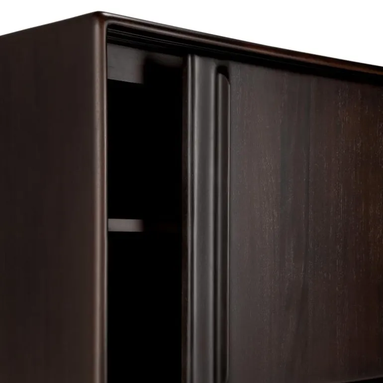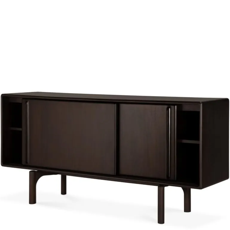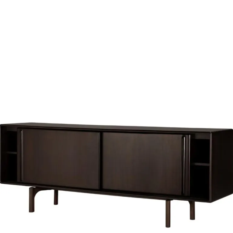 Het Flow Dressoir is uitgerust met twee schuifdeuren die zorgen voor een strak en overzichtelijk geheel. Achter de deuren bevindt zich een verstelbare legplank, waardoor de indeling eenvoudig kan worden aangepast aan de gewenste opslagbehoefte. Het meubel biedt zo voldoende ruimte voor het opbergen van servies, glaswerk of persoonlijke bezittingen, terwijl het ruime bovenblad gebruikt kan worden voor decoratieve objecten of praktische items. De combinatie van gesloten opbergruimte en een royaal presentatieoppervlak maakt het dressoir geschikt voor uiteenlopende woonruimtes.