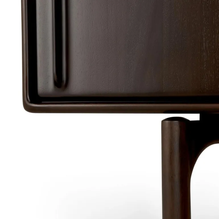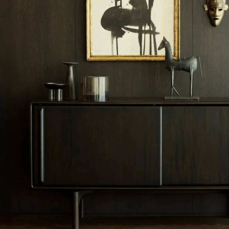 Een ander kenmerkend detail van het Flow Dressoir zijn de ranke poten die het meubel iets verheffen van de vloer. Dit zorgt niet alleen voor een lichte en evenwichtige uitstraling, maar maakt het dressoir ook praktisch in het dagelijks gebruik doordat de vloer eronder eenvoudig kan worden schoongemaakt. De balans tussen strakke lijnen en zachte rondingen zorgt ervoor dat het meubel harmonieus aansluit bij zowel moderne als klassieke interieurs.