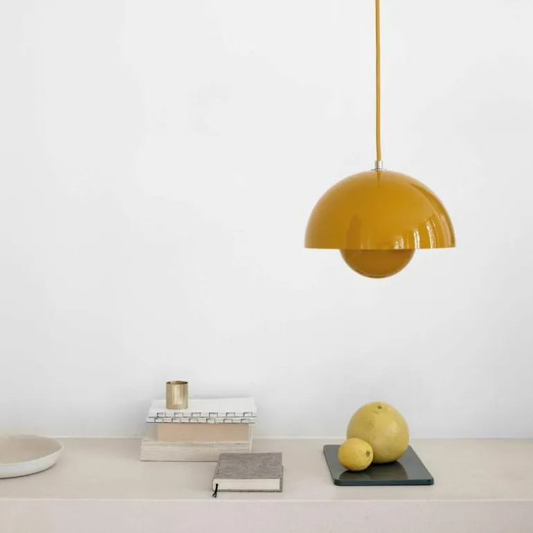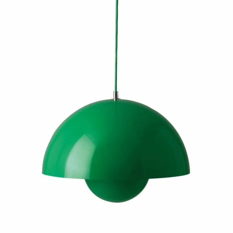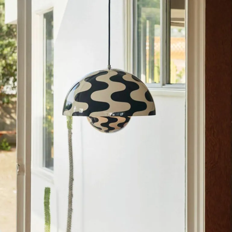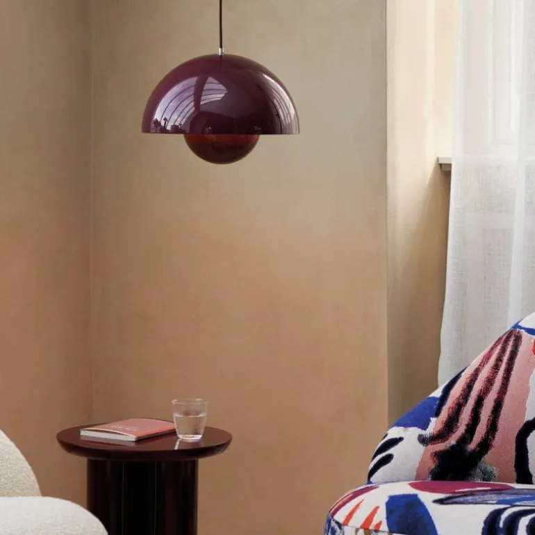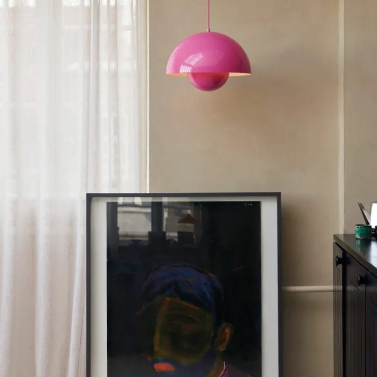Hoewel het Deense modernisme in die tijd de voorkeur gaf aan functionaliteit en het gebruik van natuurlijke materialen zoals hout, werd Panton juist bekend om zijn experimentele werk met felle kleuren en synthetische materialen zoals plastic en staal. Zijn wereldberoemde Panton Chair was bijvoorbeeld de allereerste stoel die bestond uit één stuk kunststof. Met zijn ontwerpen speelde hij in op het feit dat de meeste mensen volgens hem in een ‘grijs-beige uniformiteit’ leefden, ‘doodsbang om kleuren te gebruiken’. De Flowerpot hanglamp werd een tijdloos icoon dat in de vorm van deze VP7 wordt uitgebracht als nieuwe maat, die het midden vindt tussen de VP1 en de VP2.r