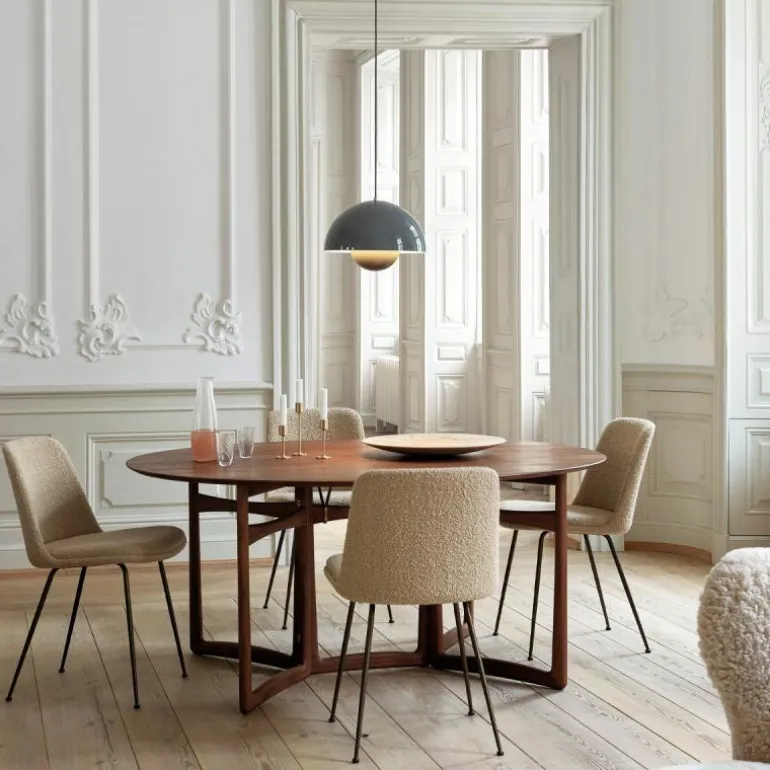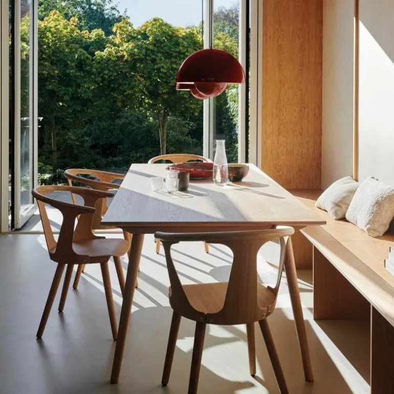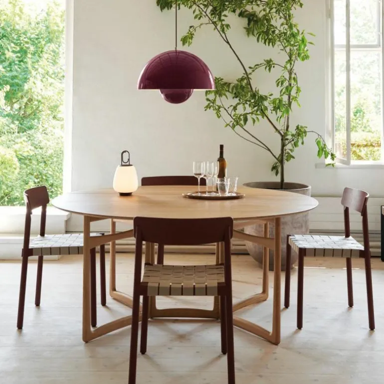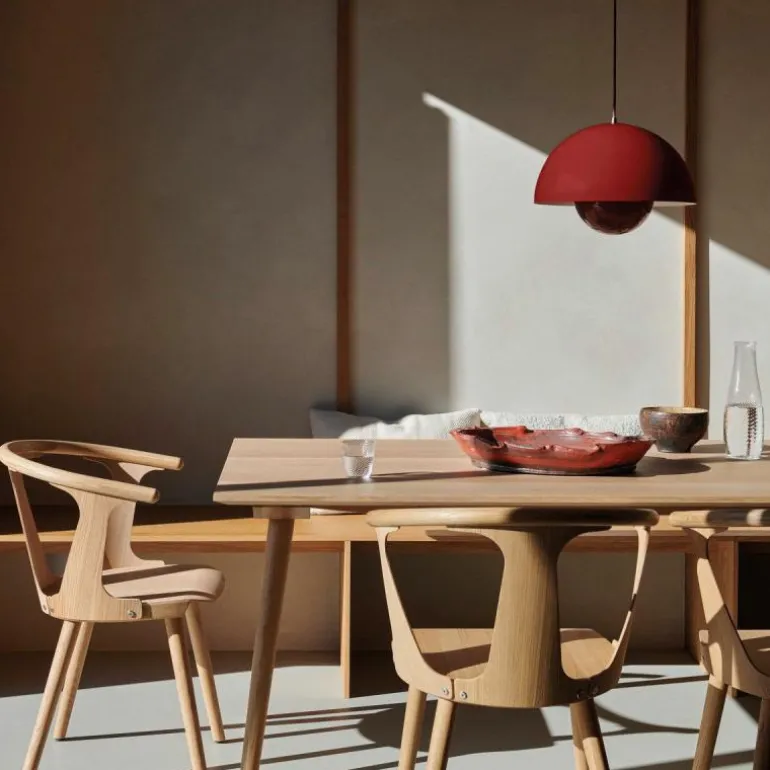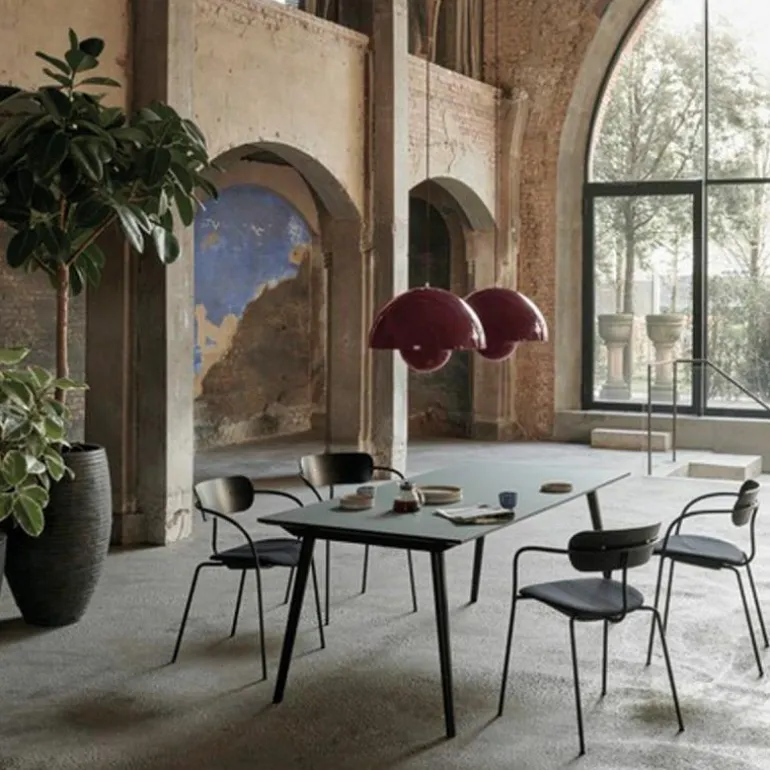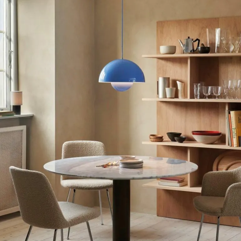 Hoewel het Deense modernisme in die tijd de voorkeur gaf aan functionaliteit en het gebruik van natuurlijke materialen zoals hout, werd Panton juist bekend om zijn experimentele werk met felle kleuren en synthetische materialen zoals plastic en staal. Zijn wereldberoemde Panton Chair was bijvoorbeeld de allereerste stoel die bestond uit één stuk kunststof. Met zijn ontwerpen speelde hij in op het feit dat de meeste mensen volgens hem in een ‘grijs-beige uniformiteit’ leefden, ‘doodsbang om kleuren te gebruiken’. De Flowerpot hanglamp werd een tijdloos icoon dat in de vorm van deze VP7 wordt uitgebracht als nieuwe maat, die het midden vindt tussen de VP1 en de VP2.r