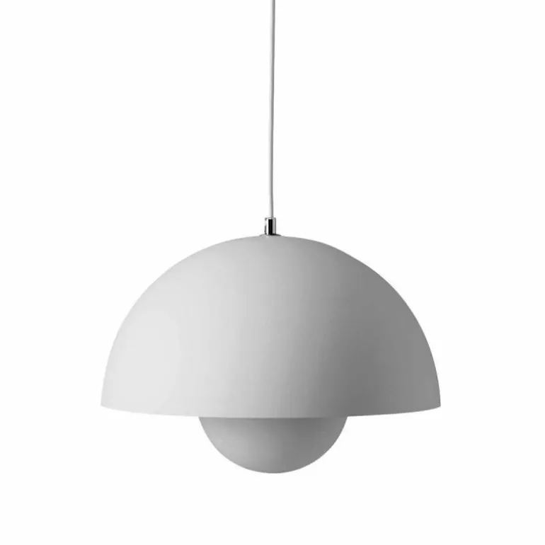 Het design van Flowerpot streeft naar wiskundige precisie: de onderste halve bol is in grootte precies de helft van de bovenste. Deze twee metalen schalen zijn precies tegenover elkaar geplaatst, waardoor het licht op een zachte manier verspreid wordt. De hanglamp is er in meerdere kleuren, van neutraal tot zacht pastel en – voor wie naar het origineel neigt – mosterdgeel. De draad is drie meter en steeds dezelfde kleur als de lampenkap. De lamp heeft een diameter van 37 centimeter en een hoogte van 27 centimeter. De aanbevolen lichtbron is E27 max 100 Watt (exclusief).