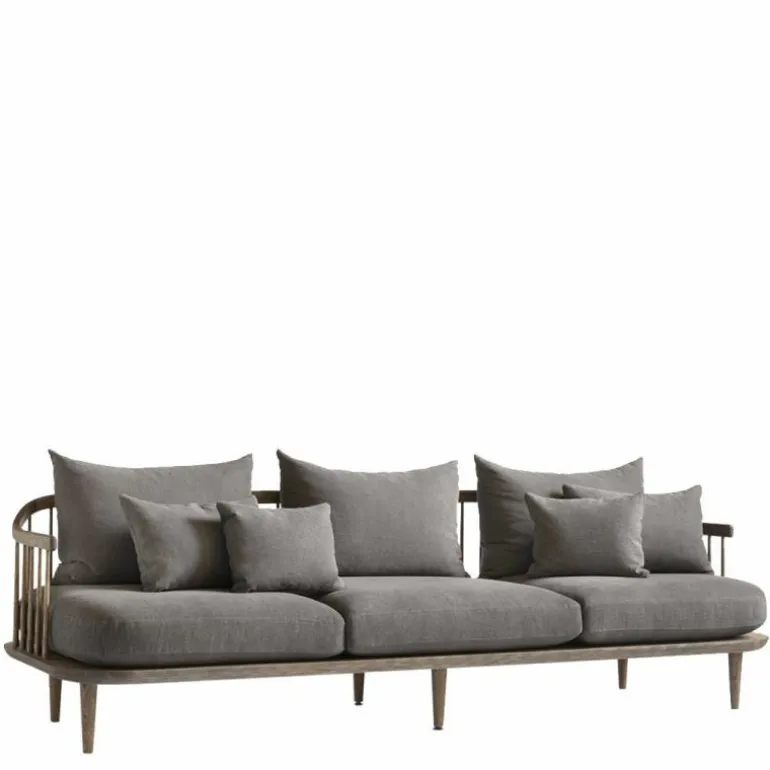 In andere opzichten is Fly traditioneel vormgegeven, met elementen van ambachtelijke houtbewerking. De frames van de bank en het fauteuil, met lattenbodems, zijn gemaakt van massief eikenhout en behandeld met witte gepigmenteerde olie of gerookte olie. Dit type materiaal en de bewerking ervan worden alleen maar mooier naarmate ze verouderen.r
