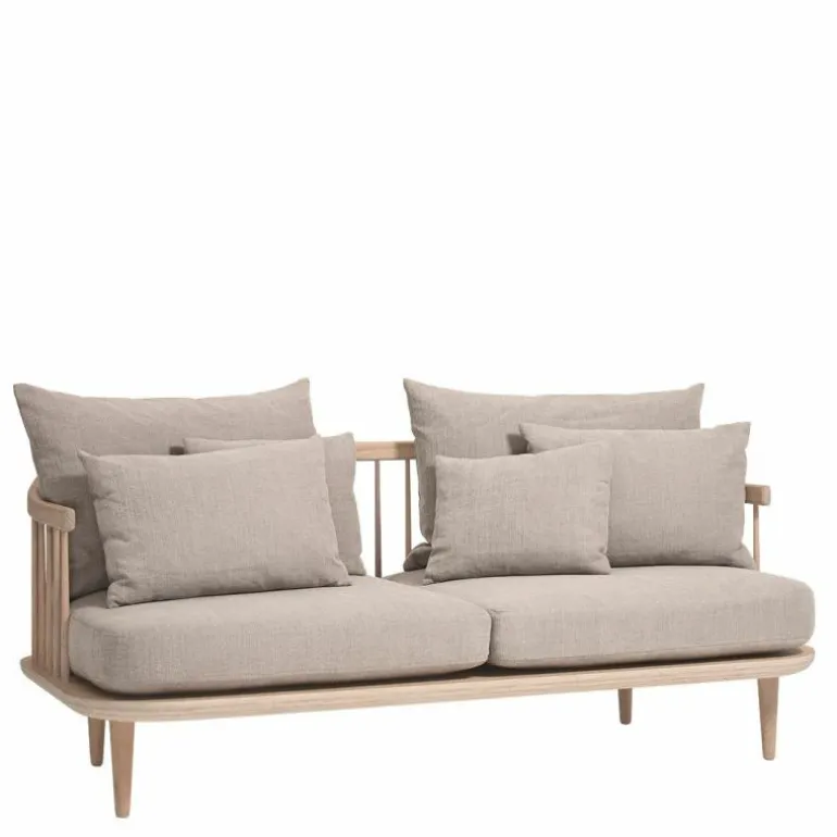 In andere opzichten is Fly traditioneel vormgegeven, met elementen van ambachtelijke houtbewerking. De frames van de bank en het fauteuil, met lattenbodems, zijn gemaakt van massief eikenhout en behandeld met witte gepigmenteerde olie of gerookte olie. Dit type materiaal en de bewerking ervan worden alleen maar mooier naarmate ze verouderen.r