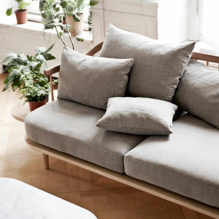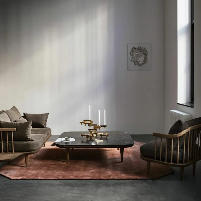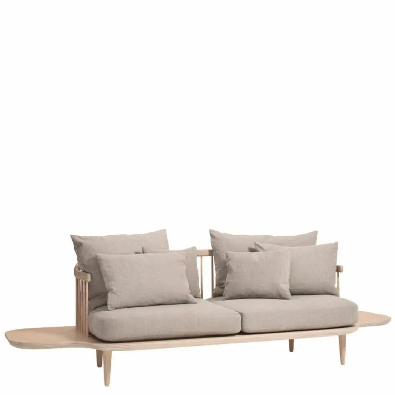 In andere opzichten is Fly traditioneel vormgegeven, met elementen van ambachtelijke houtbewerking. De frames van de bank en het fauteuil, met lattenbodems, zijn gemaakt van massief eikenhout en behandeld met witte gepigmenteerde olie of gerookte olie. Dit type materiaal en de bewerking ervan worden alleen maar mooier naarmate ze verouderen.r
