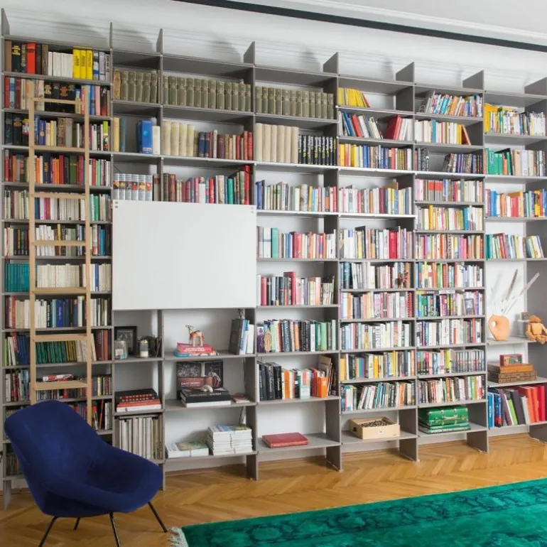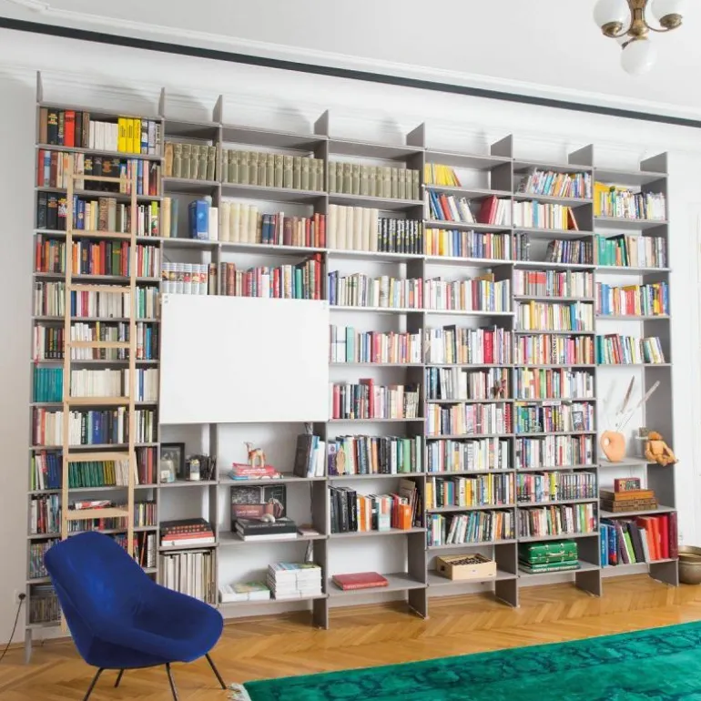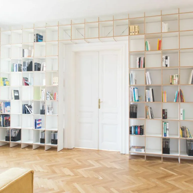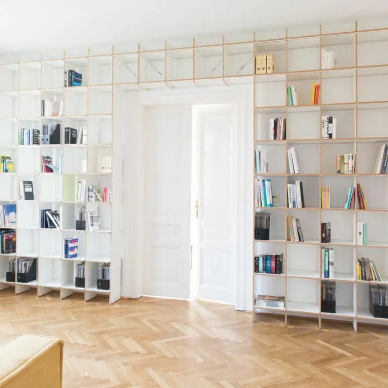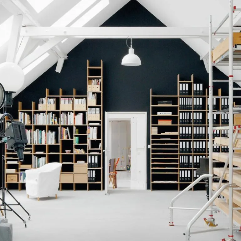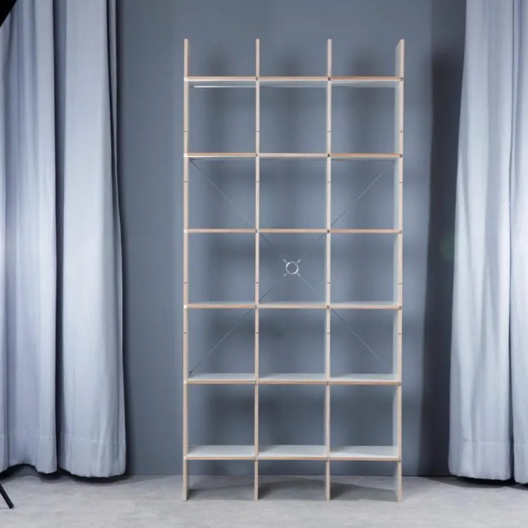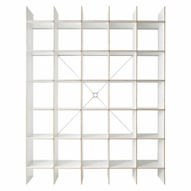 De kast is 34 centimeter diep en bestaat uit horizontale en verticale planken die met een aluminium rails versterkt kunnen worden. Op deze manier blijft het design transparant en open. Het is ook mogelijk om het systeem uit te breiden met lades, deurtjes, een ladder of een geïntegreerd bureau. Eindeloze mogelijkheden maken het ontwerp toepasbaar in elke ruimte. Gebruik de FNP Kastensysteem als boekenkast in de woonkamer of als bureau in de werkkamer. Ook aan uw bestaande FNP kast kunnen later nog aanpassingen gedaan worden. r
