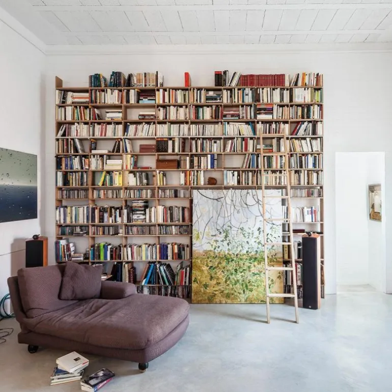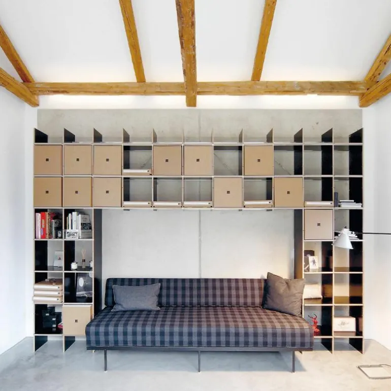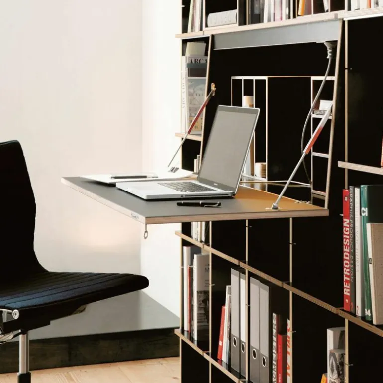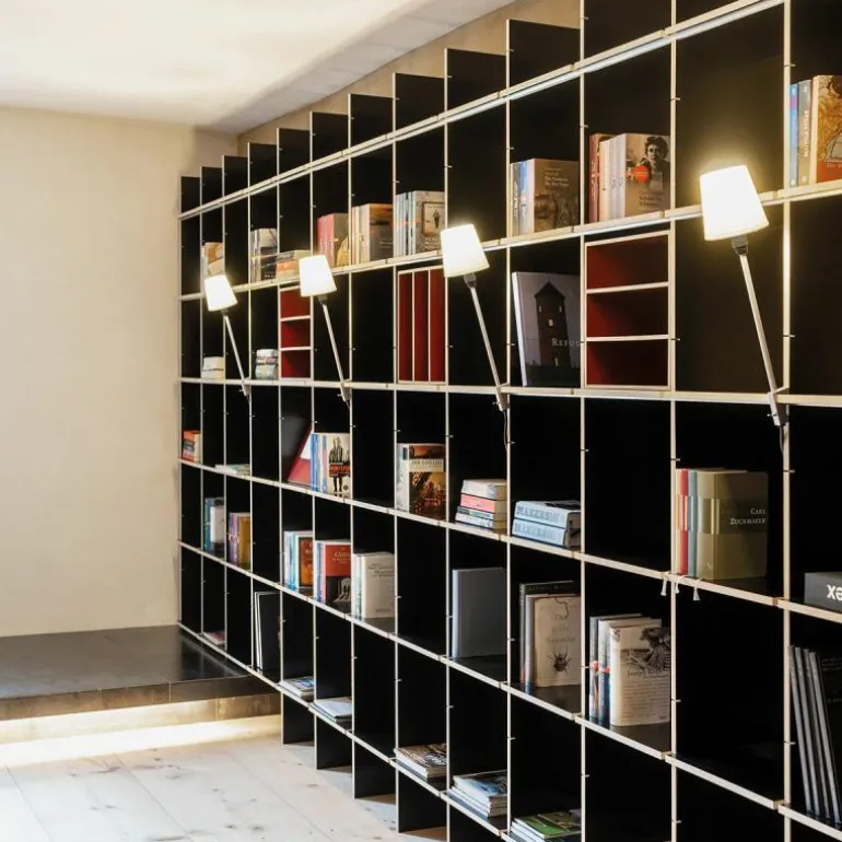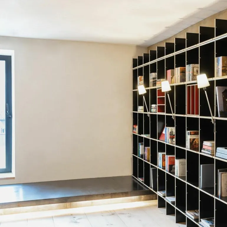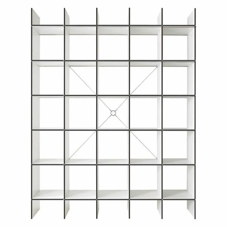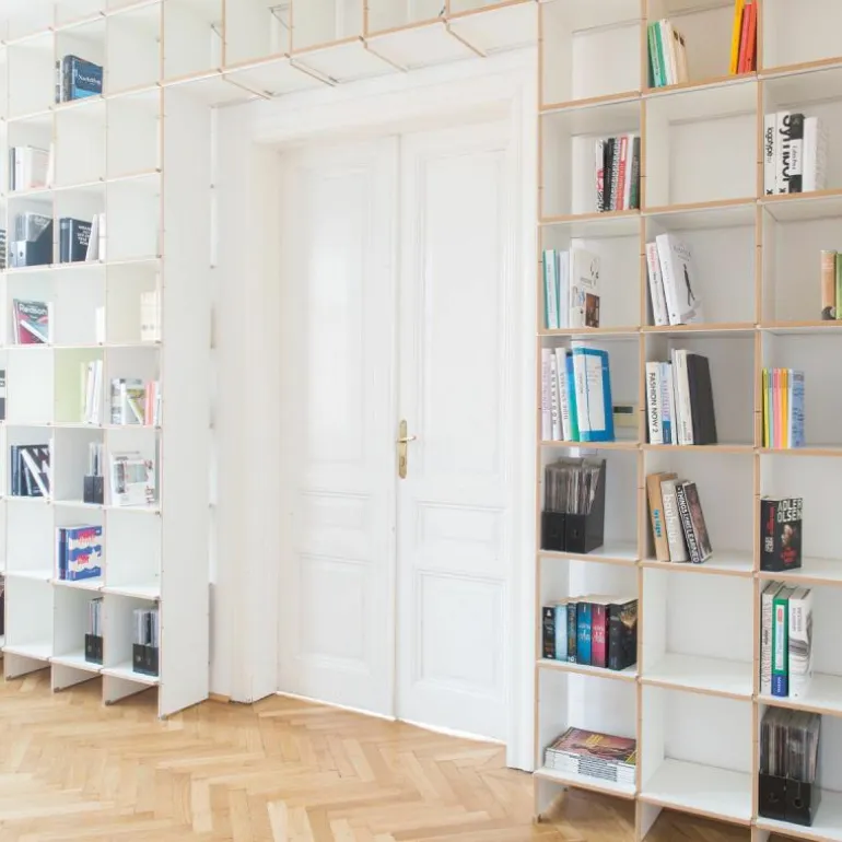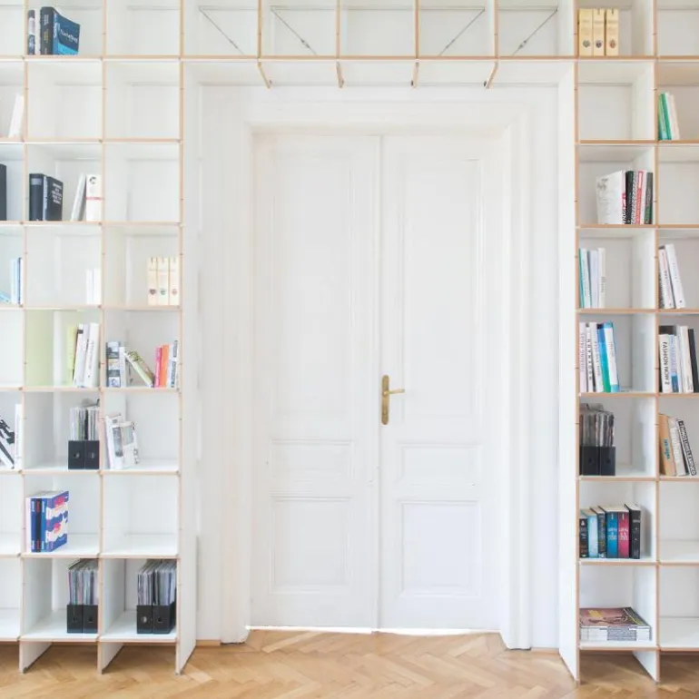 De kast is 34 centimeter diep en bestaat uit horizontale en verticale planken die met een aluminium rails versterkt kunnen worden. Op deze manier blijft het design transparant en open. Het is ook mogelijk om het systeem uit te breiden met lades, deurtjes, een ladder of een geïntegreerd bureau. Eindeloze mogelijkheden maken het ontwerp toepasbaar in elke ruimte. Gebruik de FNP Kastensysteem als boekenkast in de woonkamer of als bureau in de werkkamer. Ook aan uw bestaande FNP kast kunnen later nog aanpassingen gedaan worden. r