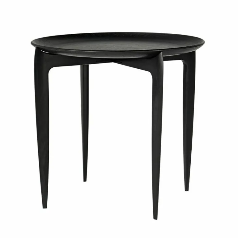 De Fritz Hansen Foldable Tray Bijzettafel is volledig vervaardig uit eikenhout. Het frame is gemaakt van massief eiken, terwijl het blad gemaakt is van eikenfineer. U kunt kiezen voor een zwart gelakte of naturel gelakte tafel. In beide uitvoeringen zijn de houtnerven goed zichtbaar, wat de bijzettafel extra karakteristiek maakt. De bijzettafel heeft een diameter van 45 centimeter en is 42 centimeter hoog. r