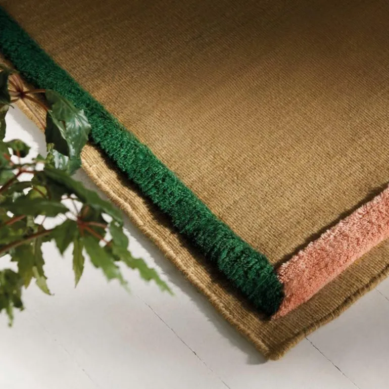 Het Framed Vloerkleed bestaat voor 100% uit hoogwaardige Nieuw-Zeelandse wol en wordt met de hand gemaakt door middel van twee verschillende technieken. Eén daarvan is een tuft techniek dat wordt gebruikt voor het creëren van de rand. Dit is een arbeidsintensieve techniek waarbij lussen worden gemaakt die tijdens dit proces worden doorgesneden. Hierdoor ontstaat er een zachte hoge rand die zorgt voor een subtiel driedimensionaal en voelbaar detail. Het centrum van het tapijt wordt gemaakt middels een andere een handgeweven techniek, genaamd Kelim. Deze techniek zorgt ervoor dat, naast een levendig contrast en rustige kleuraccenten, het vloerkleed eenvoudig schoon te maken is. Dit gezien het vuil niet tussen de pool blijft zitten.r