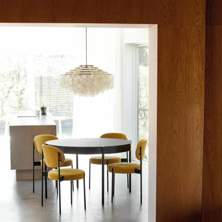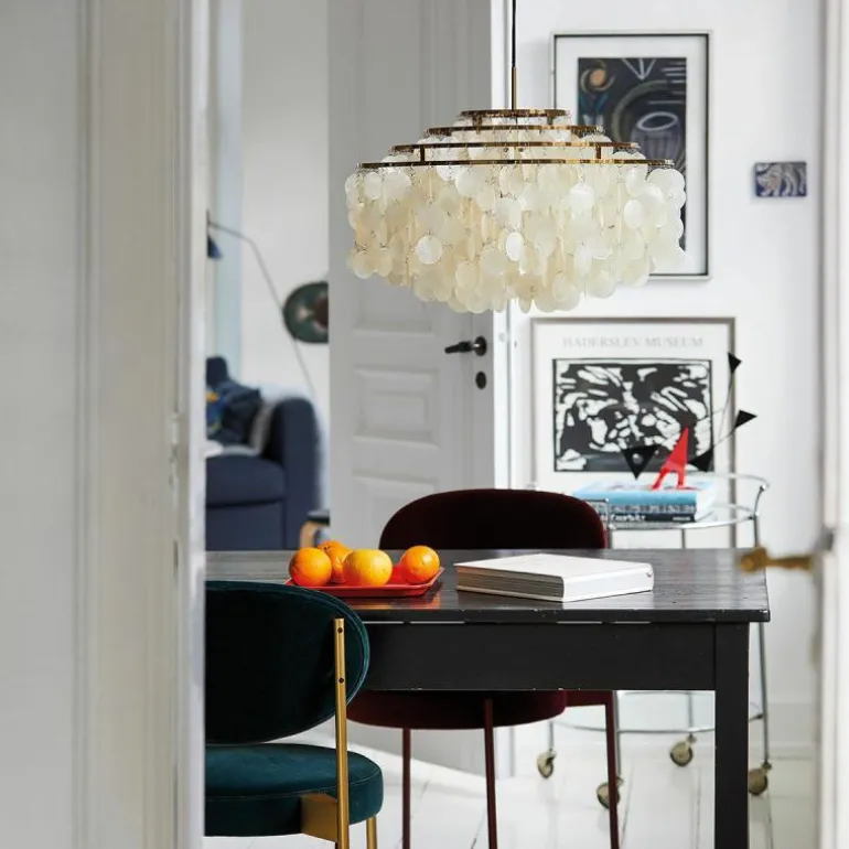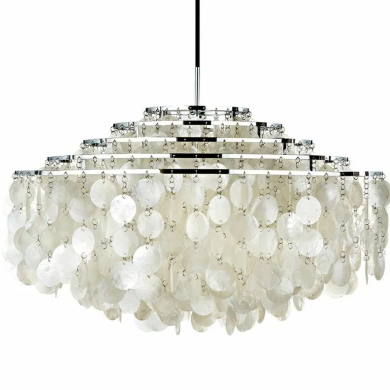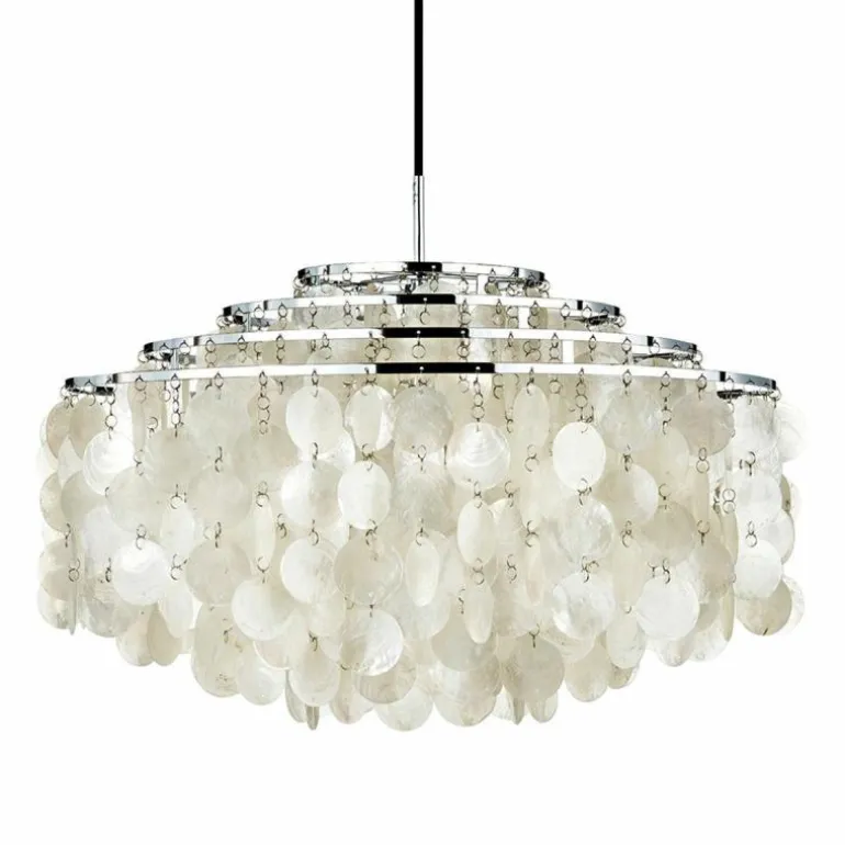 De Verpan Fun Hanglamp Large is een ontwerp uit 1964 van Verner Panton. De bijzonder sierlijke hanglamp maakt onderdeel uit van de grootste lampenserie die de Deense designer ooit heeft ontworpen. De serie is ontstaan uit het streven een lamp te ontwerpen die een unieke ervaring op zou leveren. Zodoende is de lamp niet alleen een feest voor het oog, maar prikkelt deze ook ons gehoor. Met een lichte aanraking of kleine bries zal de lamp namelijk een fijn gerinkel ten gehore brengen.r