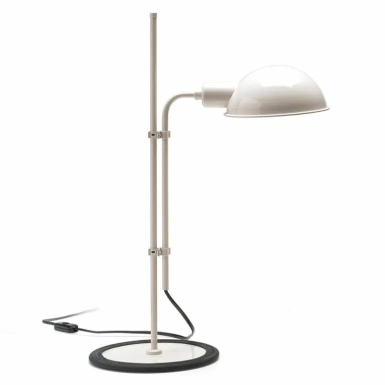De Funiculí Bureaulamp is bijna volledig gemaakt van staal. De voet van de lamp (ø19.7 cm.) is omhuld en aan de onderkant bedekt met rubber om krassen op uw bureau, tafel of dressoir te voorkomen en de lamp extra stabiliteit te geven. U heeft keuze uit meerdere kleuren. r