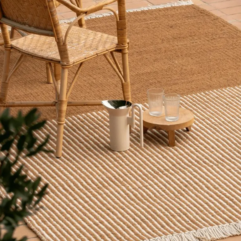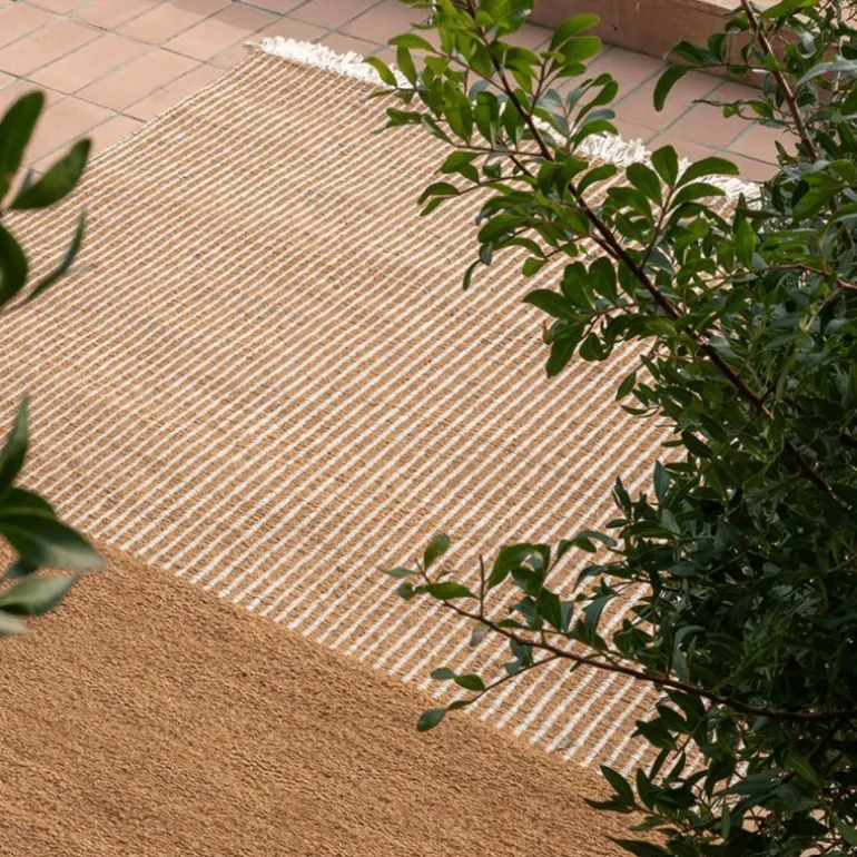 De keuze voor kokosvezel als hoofdbestanddeel onderstreept de robuuste, duurzame eigenschappen van het vloerkleed. Deze natuurlijke vezel staat bekend om zijn sterkte en slijtvastheid, waardoor het Garden Vloerkleed geschikt is voor langdurig buitengebruik zonder in te leveren op visuele verfijning. De combinatie met gerecyclede materialen versterkt bovendien de ecologische waarde van het ontwerp, passend bij hedendaagse duurzaamheidsprincipes en milieubewuste vormgeving.