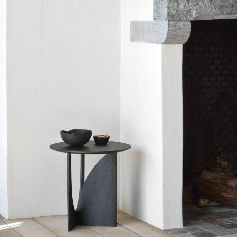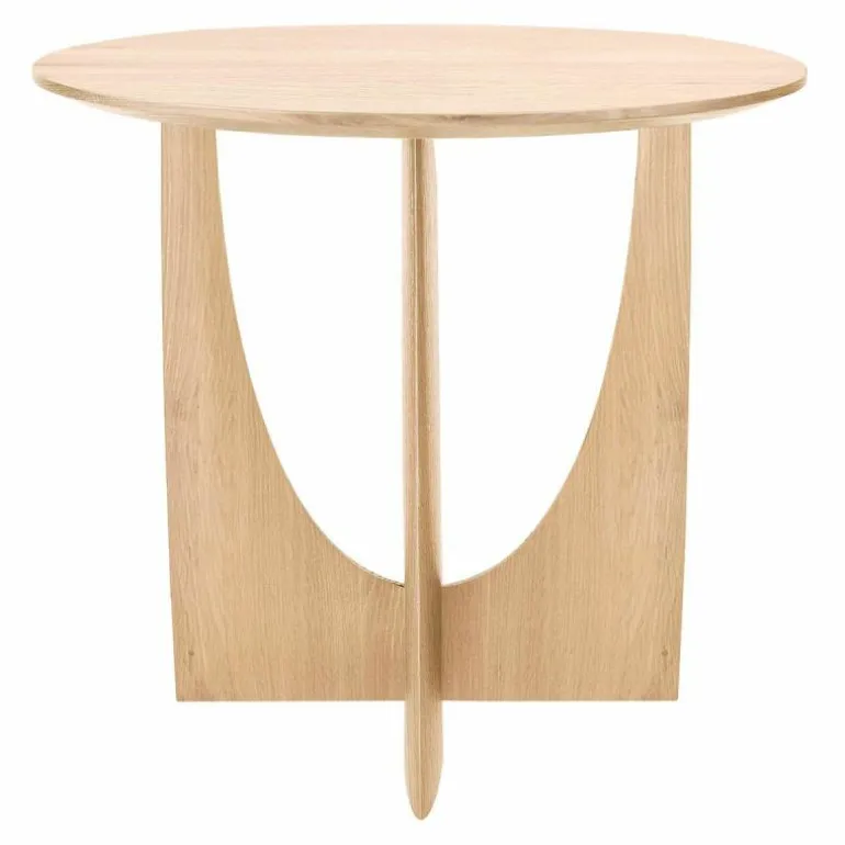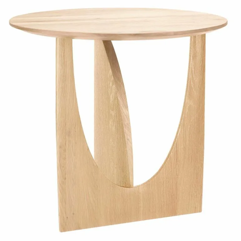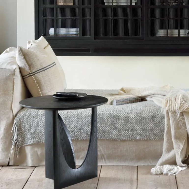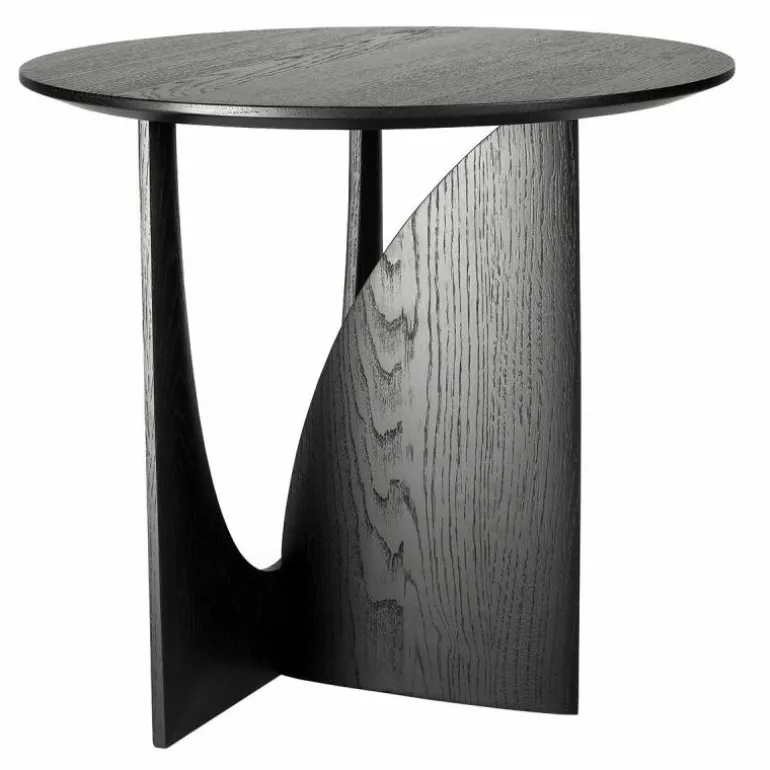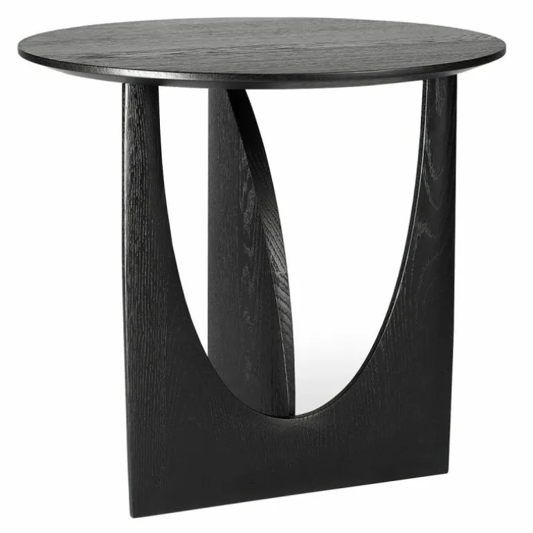 De Ethnicraft Geometric Bijzettafel is een ontwerp van Alain van Havre. Nog niet eerder bracht het merk een design uit dat zo met onze verbeelding blijft spelen. De grove vormen ontrafelen een verhaal van mysterieuze raakvlakken, waarbij ook de donkere afwerking meespeelt in het geheel. In eerste instantie lijkt het rond afgewerkte gedeelte van het onderstel haast uit de rechte zijde gedrukt, maar niets is minder waar. De twee gedeeltes zijn afzonderlijk van elkaar in vorm gebracht en hebben raakvlakken op exact de goede punten. Het resultaat? Een speels perspectief dat vanaf iedere zijde een verassende kijk geeft. Naast een veelzijdige blik is het meubelstuk ook multifunctioneel in gebruik. De Geometric Bijzettafel vindt zijn weg in de woonkamer, maar ook als nachttafel in de slaapkamer misstaat dit design zeker niet! De verfijnde belijning is in harmonie met de zwart of naturel geverniste afwerking van het eikenhout. Begin 2020 voegt Ethnicraft hier een nieuwe uitvoering aan toe: de Geometric bijzettafel in prachtig solide teakhout met een beschermlaag van vernis. r