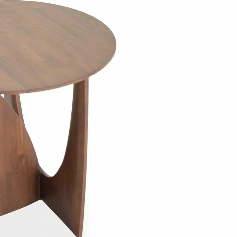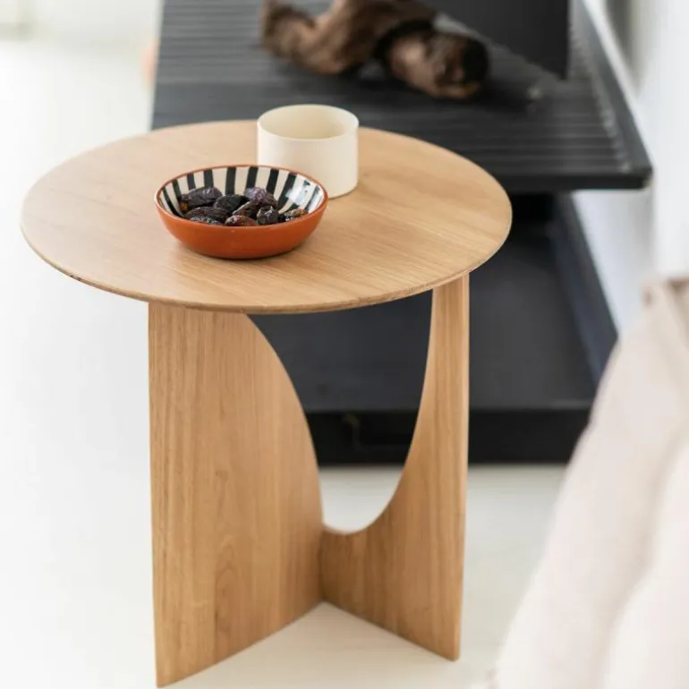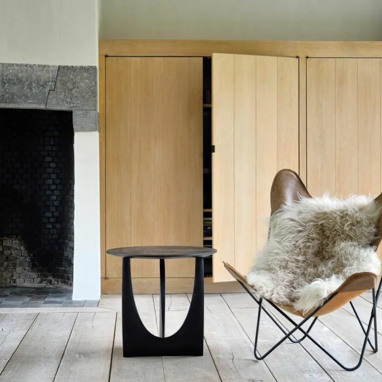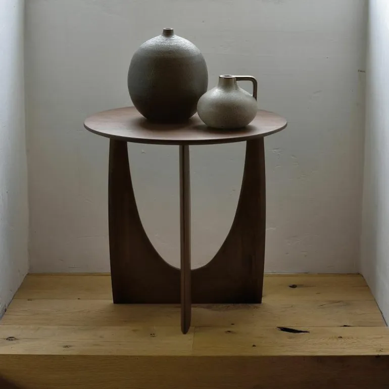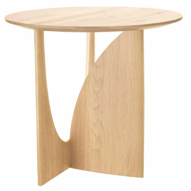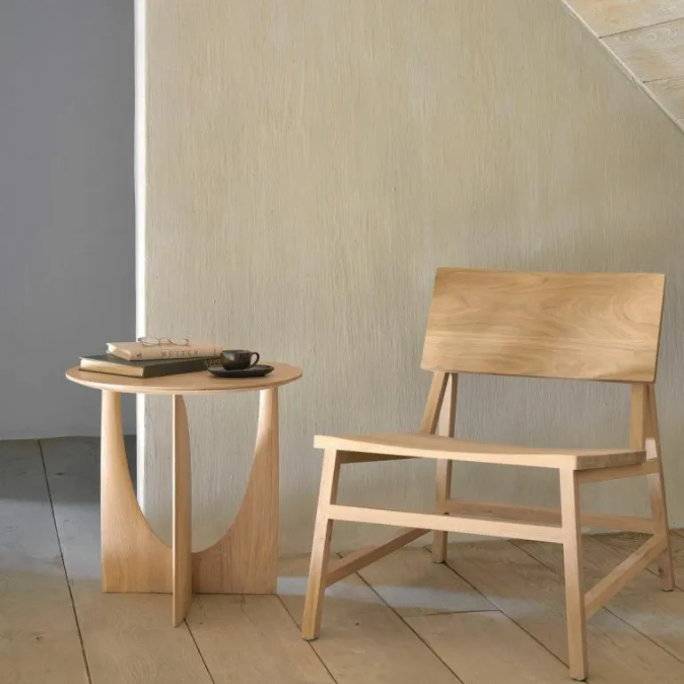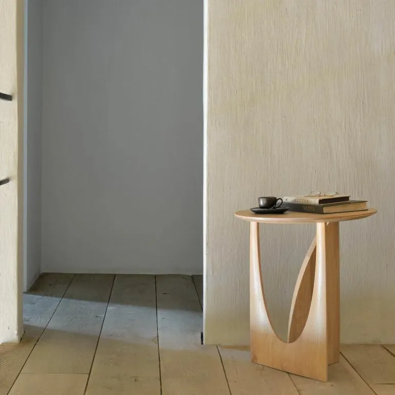 De Ethnicraft Geometric Bijzettafel is een ontwerp van Alain van Havre. Nog niet eerder bracht het merk een design uit dat zo met onze verbeelding blijft spelen. De grove vormen ontrafelen een verhaal van mysterieuze raakvlakken, waarbij ook de donkere afwerking meespeelt in het geheel. In eerste instantie lijkt het rond afgewerkte gedeelte van het onderstel haast uit de rechte zijde gedrukt, maar niets is minder waar. De twee gedeeltes zijn afzonderlijk van elkaar in vorm gebracht en hebben raakvlakken op exact de goede punten. Het resultaat? Een speels perspectief dat vanaf iedere zijde een verassende kijk geeft. Naast een veelzijdige blik is het meubelstuk ook multifunctioneel in gebruik. De Geometric Bijzettafel vindt zijn weg in de woonkamer, maar ook als nachttafel in de slaapkamer misstaat dit design zeker niet! De verfijnde belijning is in harmonie met de zwart of naturel geverniste afwerking van het eikenhout. Begin 2020 voegt Ethnicraft hier een nieuwe uitvoering aan toe: de Geometric bijzettafel in prachtig solide teakhout met een beschermlaag van vernis. r