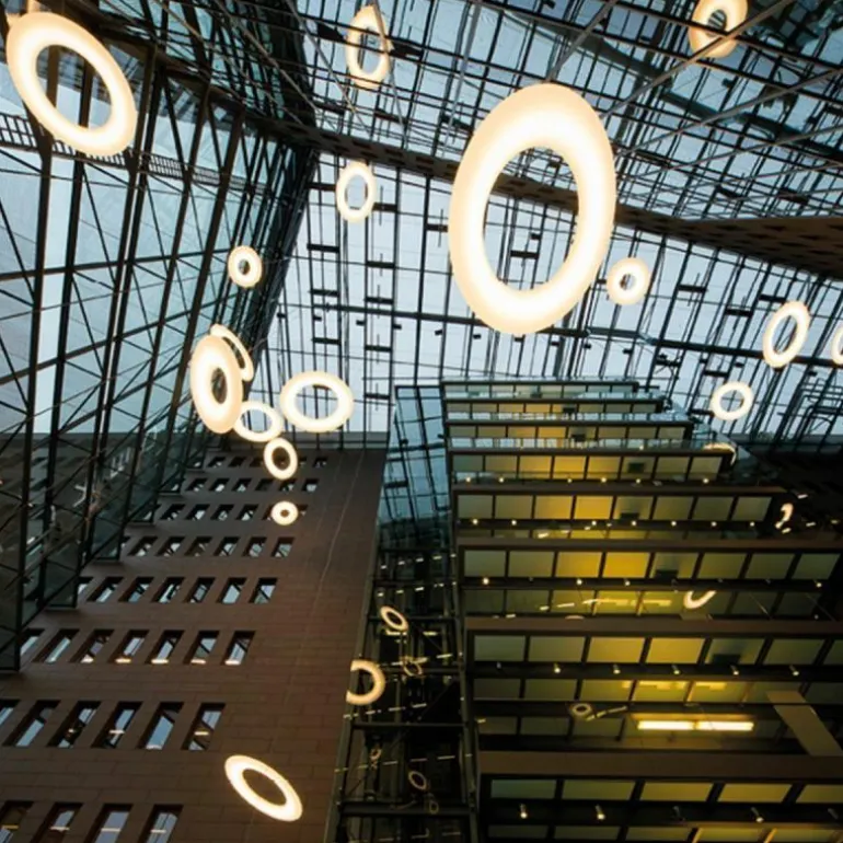 De hanglampen hebben standard een snoer van maximal 150 centimeter. Op aanvraag is ook een langer snoer mogelijk. De lampen zijn dimbaar via een DALI-systeem.