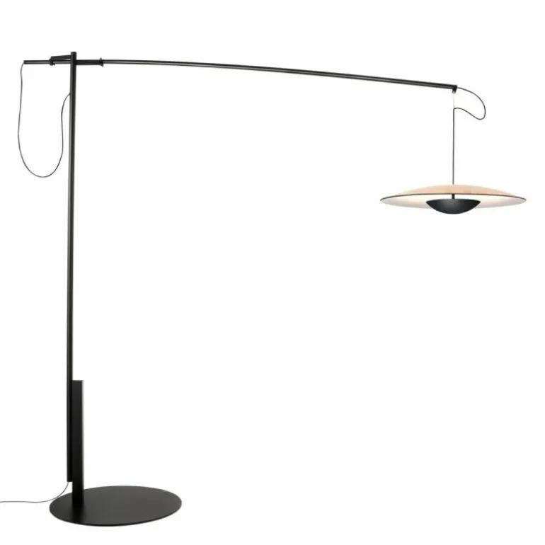 In het design is gebruik gemaakt van diverse materialen. Zo is de lampenkap uit hout en papier gevormd. Hout dat normaal niet makkelijk in een vorm te persen is, werd hiervoor onder hoge druk samengeperst met papier. Deze techniek is vervolgens toegepast bij alle lampen uit de Ginger serie. De zwart gekleurde diffusorkap is uitgevoerd in aluminium en zorgt voor een aangenaam indirect lichteffect. Het toegepaste carbon materiaal voor de horizontale lamparm is sterk en licht van gewicht. Een ronde metalen voet en staander zorgen voor een stabiele positionering van de lamp. Verstel eenvoudig de positie van de lampenkap naar voren, achteren en zijwaarts. De Ginger XXL 60 booglamp beschikt over een geïntegreerde SMD led van 22,4W met een lichtopbrengst van 2933 Lumen. Met de voetdimmer regel je eenvoudig de gewenste hoeveelheid licht. r