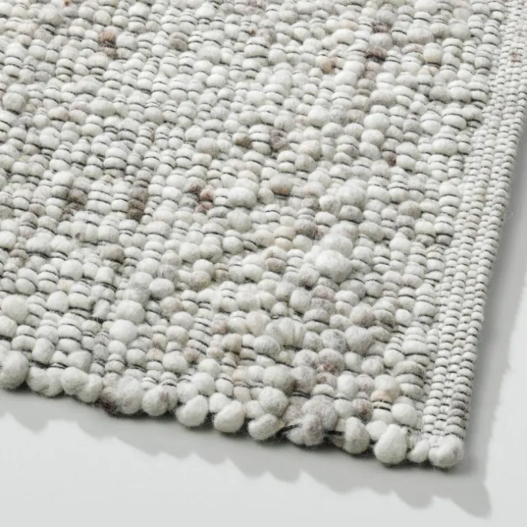 Het Gravel Vloerkleed is een handgeweven ontwerp van Nieuw-Zeelandse wol, dat een duurzaam maakproces heeft doorstaan met aandacht voor mens, dier en planeet. Het kleed dankt zijn naam aan de structuur die doet denken aan kiezelstenen. Dit effect ontstaat doordat het garen wordt gedraaid, voordat het geweven wordt. Het kleed krijgt een moderne touch dankzij het zwarte kettingdraad dat erdoorheen geweven is en zal dan ook een prachtige toevoeging zijn aan uw eigentijdse interieur. r