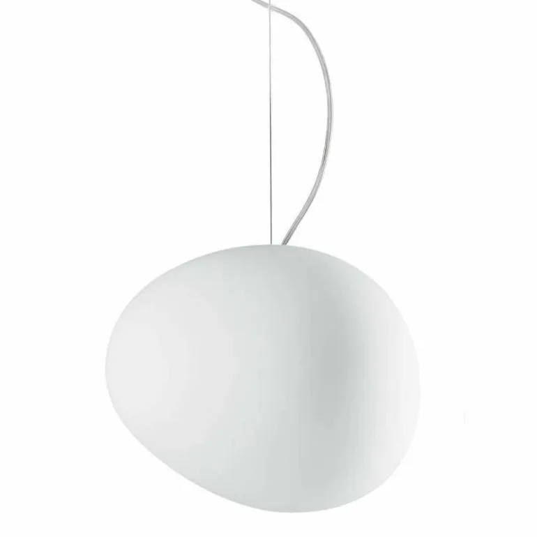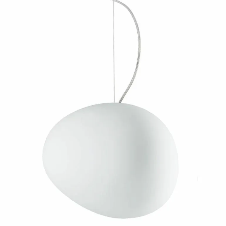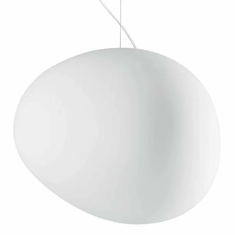 De Foscarini Gregg Hanglamp is een ontwerp van Ludovica E Roberto Palomba. Het is een unieke en vooral decoratieve lamp. De lamp heeft een enorme elegantie en een natuurlijke stijl. De lamp kan gezien worden als een ei, dat symbool staat voor creatie en hergeboorte. Een spannende lamp omdat hij vanuit iedere hoek een andere vorm heeft. Gregg is gemaakt van glas en zorgt voor een mooi diffuus licht. De lamp komt in elke ruimte tot zijn recht en is daardoor veelzijdig te gebruiken. De Gregg Hanglamp is verkrijgbaar in verschillende maten en met verschillende lichtbronnen. We zetten ze hieronder voor u op een rijtje:r
