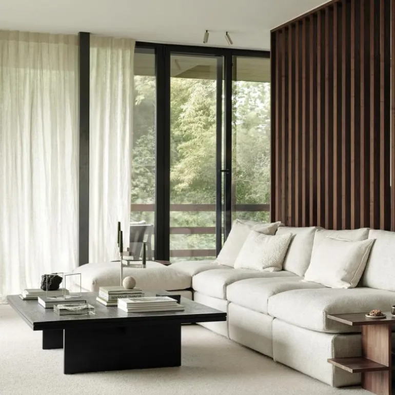 Door de royale afmetingen neemt de Grooves Salontafel een centrale plaats in binnen de woonkamer. Het lage silhouet en de heldere belijning zorgen voor rust en balans, terwijl de bewerkte structuur karakter toevoegt. Deze combinatie maakt dat de tafel geschikt is voor zowel moderne interieurs als meer eclectische stijlen. Het ontwerp is ingetogen maar heeft voldoende eigenheid om een ruimte te versterken.