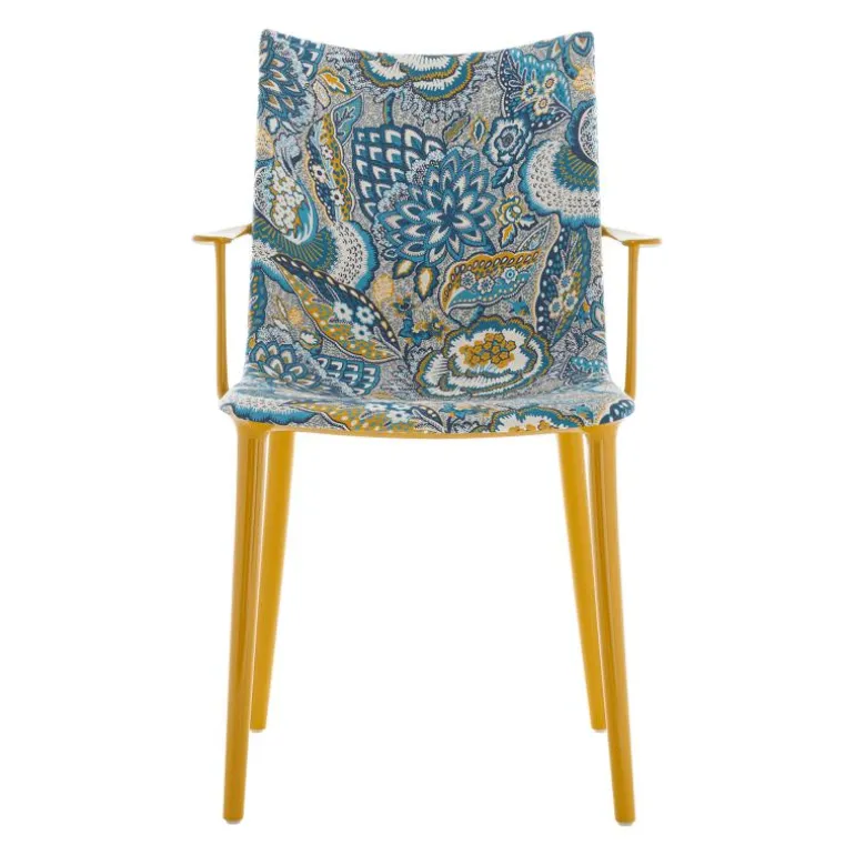 Het onderstel van de H.H.H. Upholstered Fabric stoel is vervaardigd uit gerecycled kunststof, waarmee Kartell zijn inzet voor duurzaamheid blijft onderstrepen. Deze combinatie van innovatieve materialen en hoogwaardige stoffering positioneert de stoel als een ontwerp dat niet alleen inspeelt op actuele stijlvoorkeuren, maar ook op verantwoord materiaalgebruik.