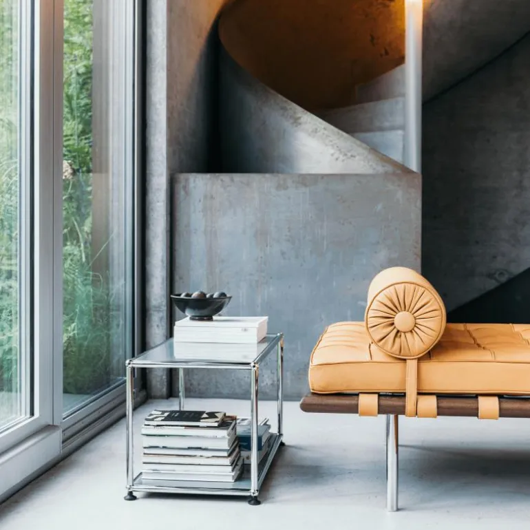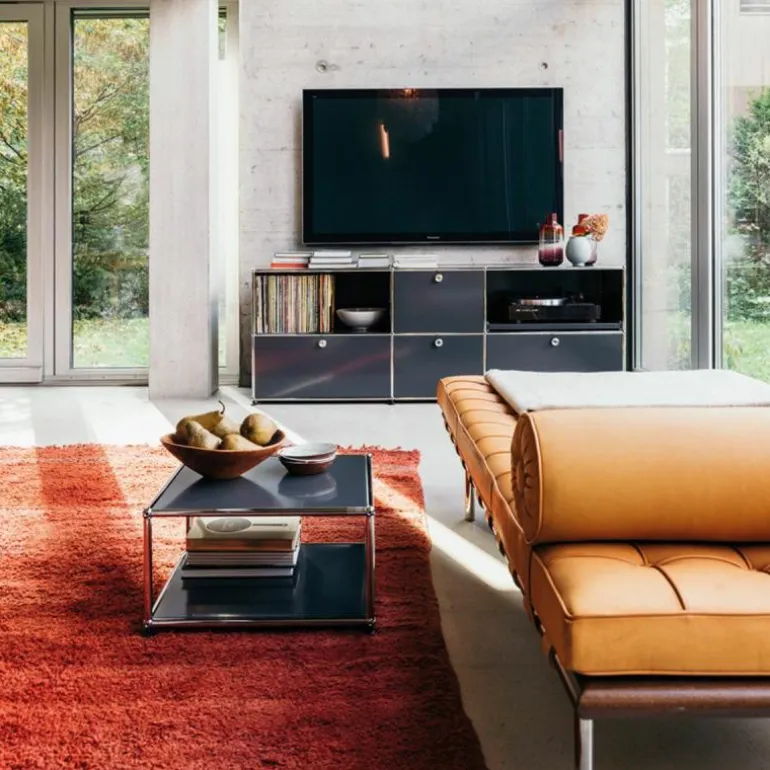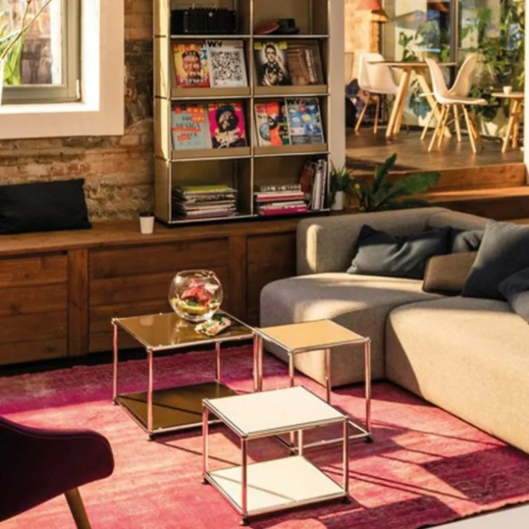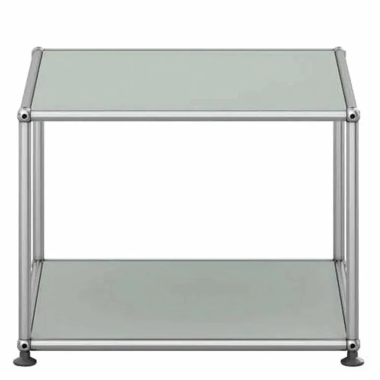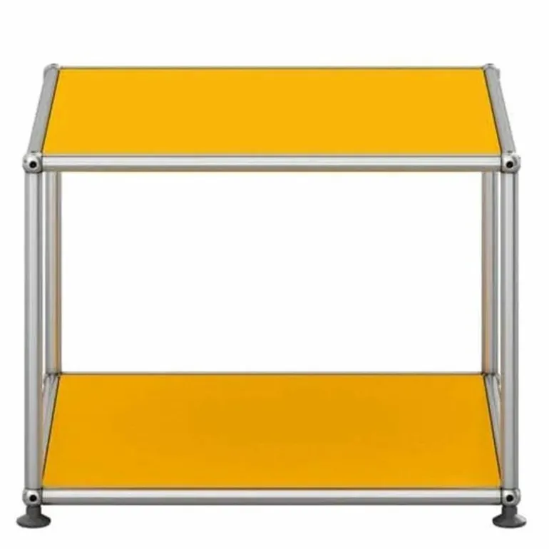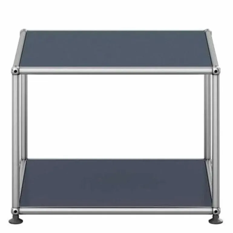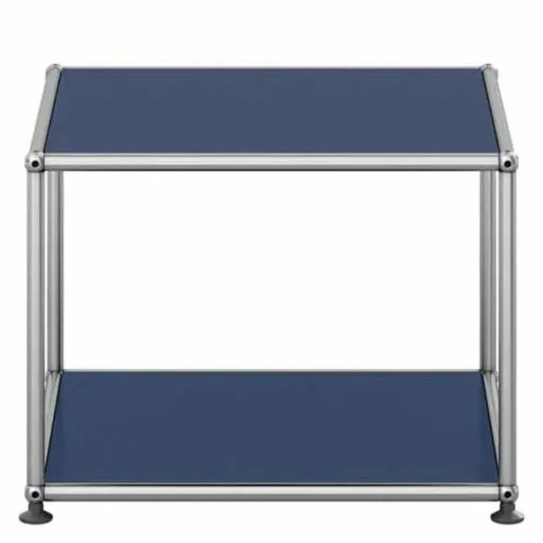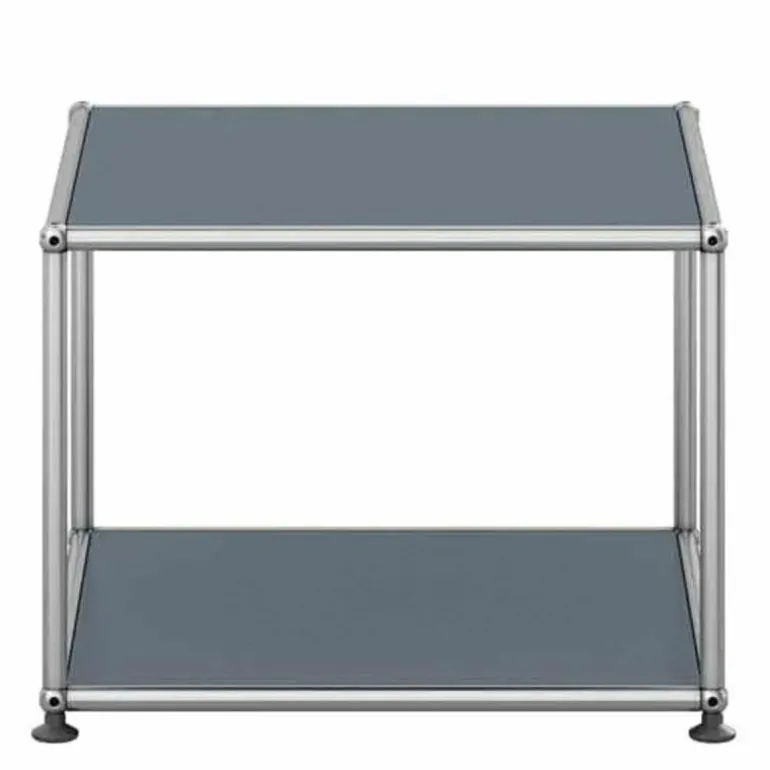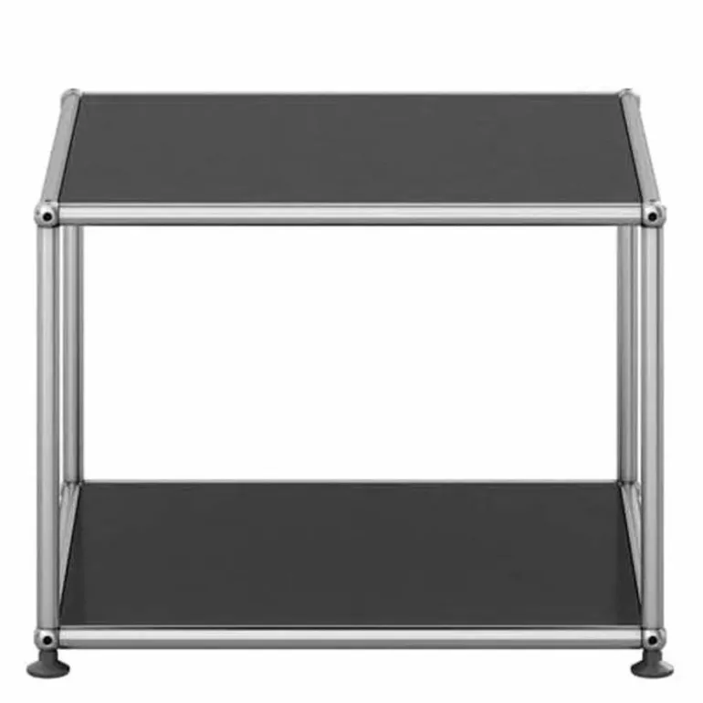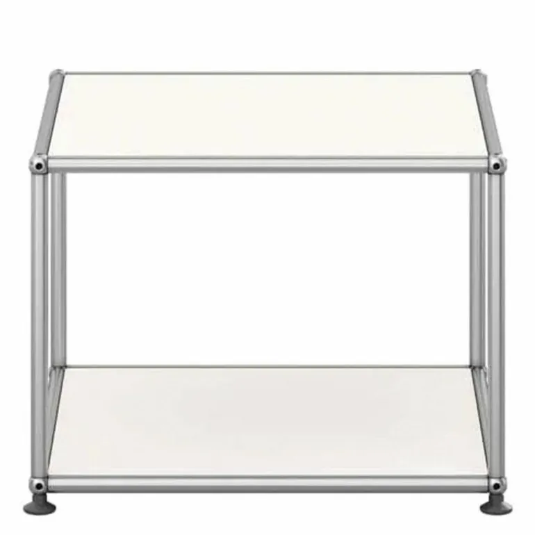 De boven- en onderzijde is gesloten met een paneel en de overige zijdes zijn open. De Haller Bijzettafel (M22) is gemaakt van gepoedercoat plaatstaal en wordt omgeven door een verchroomd, stalen frame welke het meubel een stijlvol uiterlijk geeft. Bovendien is het meubel voorzien van gepatenteerde USM-verbindingskogels. Met een keuze uit maar liefst veertien kleuren is er voor elke woonstijl een passend meubel samen te stellen. Het ontwerp is geplaatst op vier poten voor een stabiele plaatsing van de bijzettafel.r