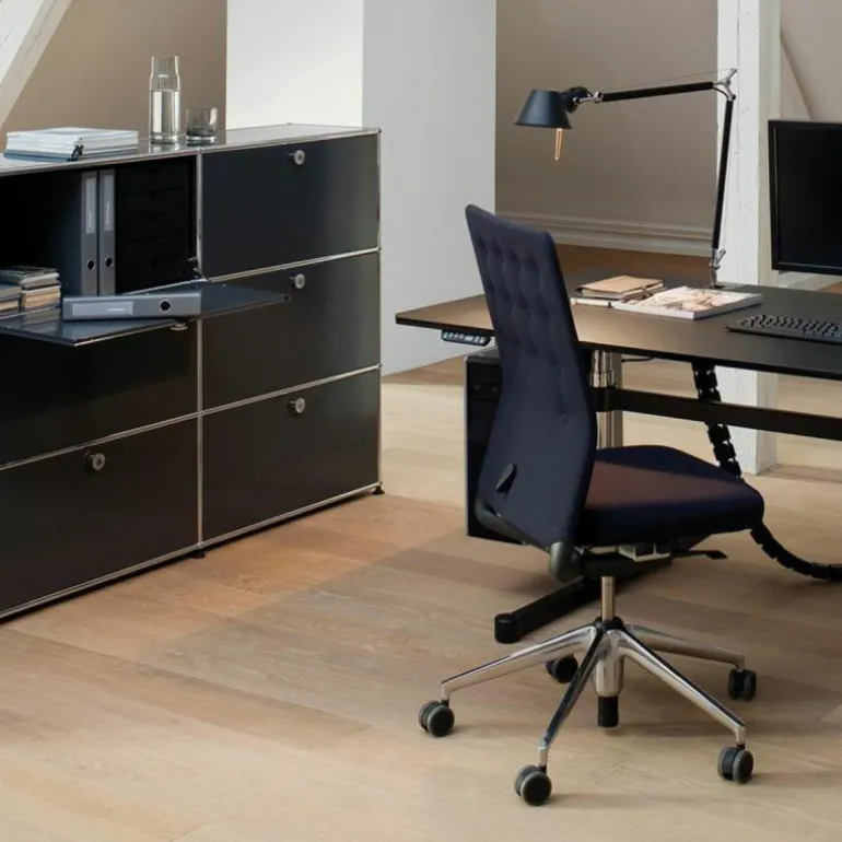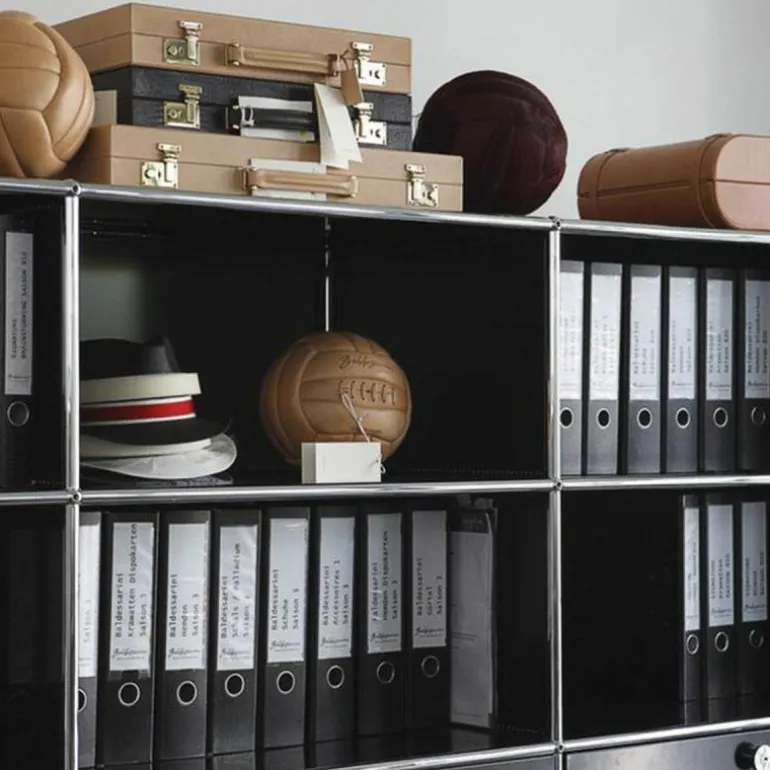 Doordat USM alleen de meest hoogwaardige en verfijnde materialen bij de productie van het Haller Dressoir gebruikt, heeft het meubel een zeer lange levensduur. Het verchroomde stalen frame ziet er bijzonder stijlvol uit en is uitgevoerd met de legendarische gepatenteerde USM-verbindingskogels. Het frame van het USM Dressoir is gemaakt van gepoedercoat plaatstaal. Met een keuze uit 14 kleuren is er voor elke woonstijl een passende USM Haller Kast. De acht poten zorgen voor een stabiele plaatsing van de kast. r