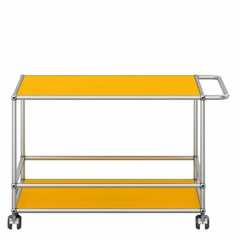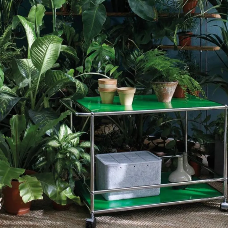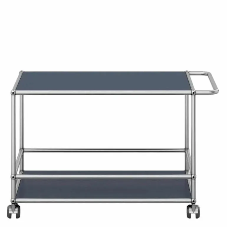 Doordat USM alleen de meest hoogwaardige en verfijnde materialen bij de productie van de Haller Trolley gebruikt, heeft de trolley een zeer lange levensduur. Het verchroomde stalen frame ziet er bijzonder stijlvol uit en is uitgevoerd met de legendarische gepatenteerde USM-verbindingskogels. De inlegborden van de trolley zijn gemaakt van gepoedercoat plaatstaal. Kies uit 14 USM kleuren om de trolley perfect af te stemmen op uw inrichting.r