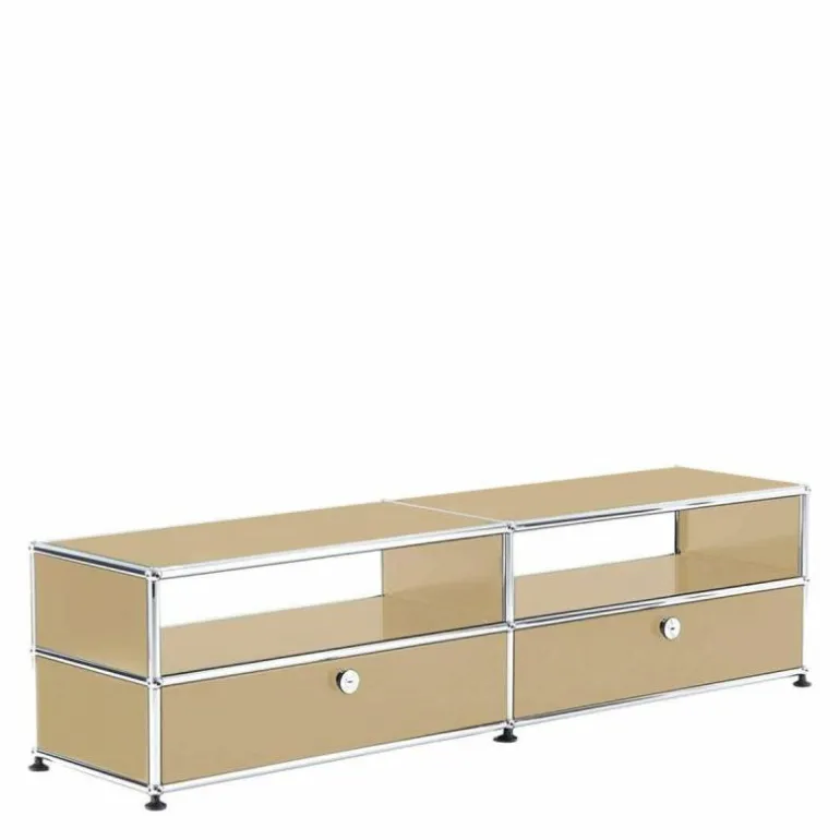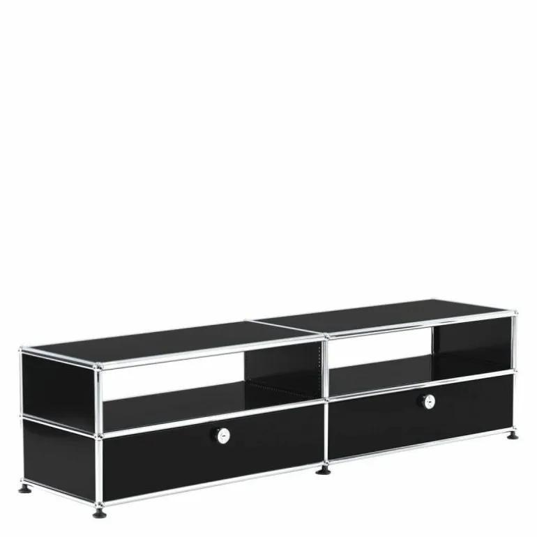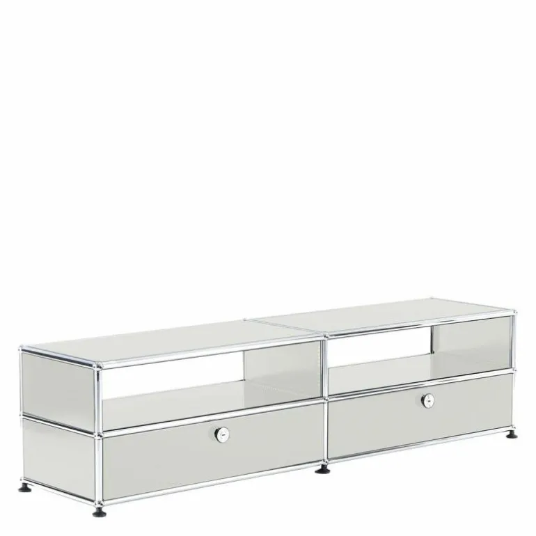 Doordat USM alleen de meest hoogwaardige en verfijnde materialen bij de productie van het Haller TV-Meubel gebruikt, heeft het meubel een zeer lange levensduur. Het verchroomde stalen frame ziet er bijzonder stijlvol uit en is uitgevoerd met de legendarische gepatenteerde USM-verbindingskogels. Het frame van het USM TV-Meubel is gemaakt van gepoedercoat plaatstaal. Met een keuze uit 14 kleuren is er voor elke woonstijl een passende USM Haller Kast. De zes poten zorgen voor een stabiele plaatsing van de kast. r