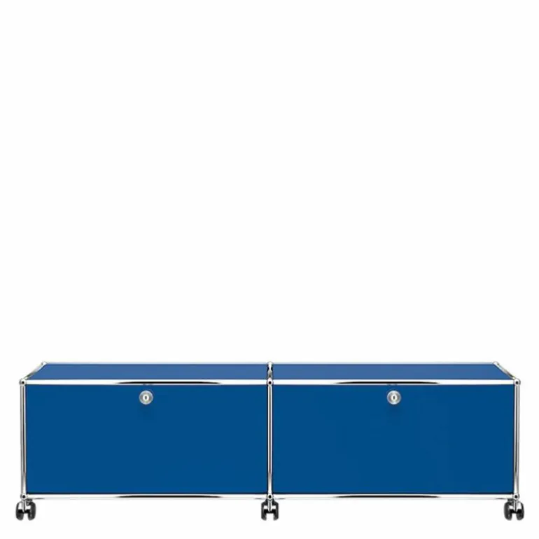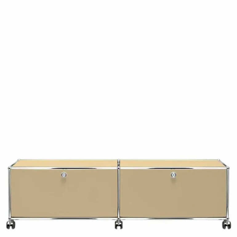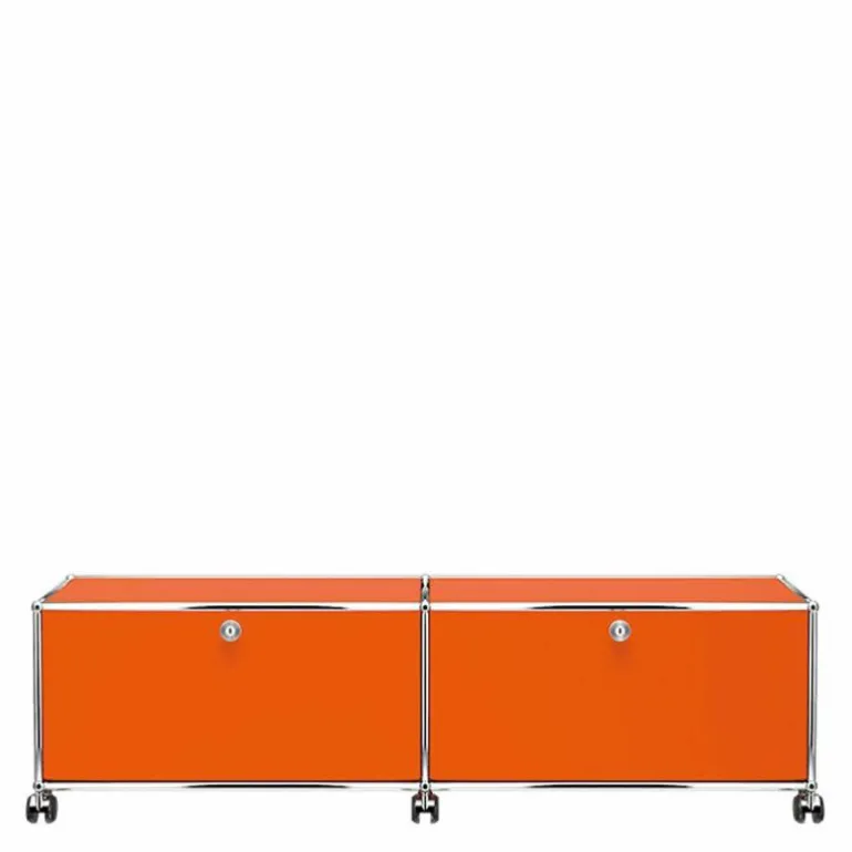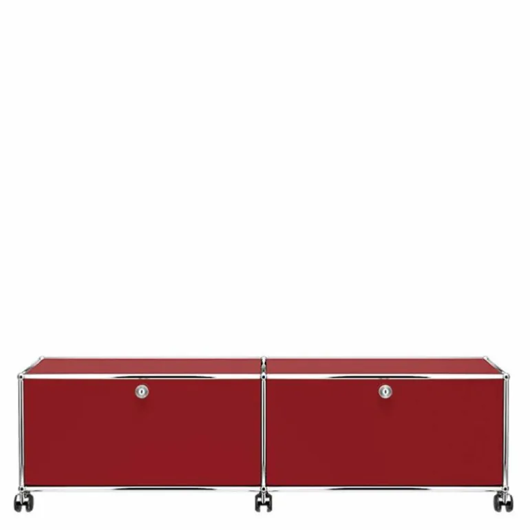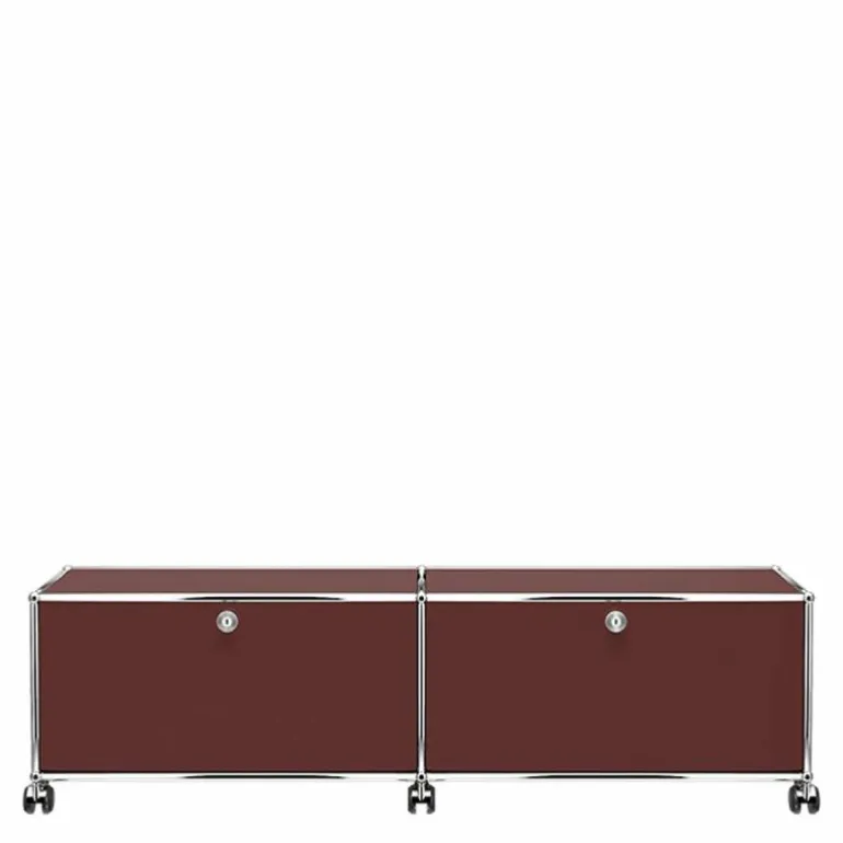 Doordat USM alleen de meest hoogwaardige en verfijnde materialen bij de productie gebruikt, heeft het meubel een zeer lange levensduur. Het verchroomde stalen frame ziet er bijzonder stijlvol uit en is uitgevoerd met de legendarische gepatenteerde USM-verbindingskogels. Het frame van het USM Haller TV-meubel is gemaakt van gepoedercoat plaatstaal. Met een keuze uit 14 kleuren is er voor elke woonstijl een passend USM Haller TV-meubel samen te stellen. Het meubel is op zes zwenkwielen geplaatst.r