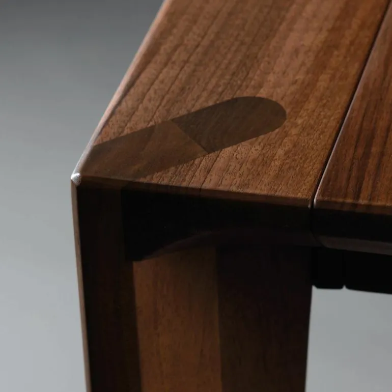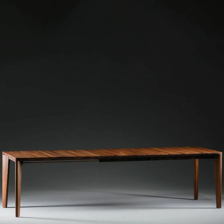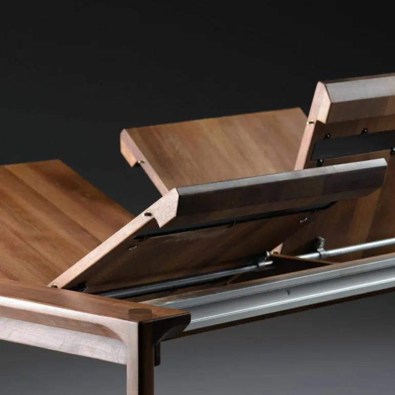 De eettafel is geheel vervaardigd uit massief hout van hoge kwaliteit en kan uitgevoerd worden in zeven houtsoorten. Vanwege de verschillende mogelijkheden heeft MisterDesign één variant uitgezocht die direct verkrijgbaar is. Deze is uitgevoerd in geolied Europees walnoot en heeft een breedte van 160 centimeter, diepte van 90 centimeter en hoogte van 76 centimeter. De tafel beschikt over een extensie blad van 55 centimeter waarmee de tafel van 160 centimeter naar 105 centimeter vergroot kan worden. r