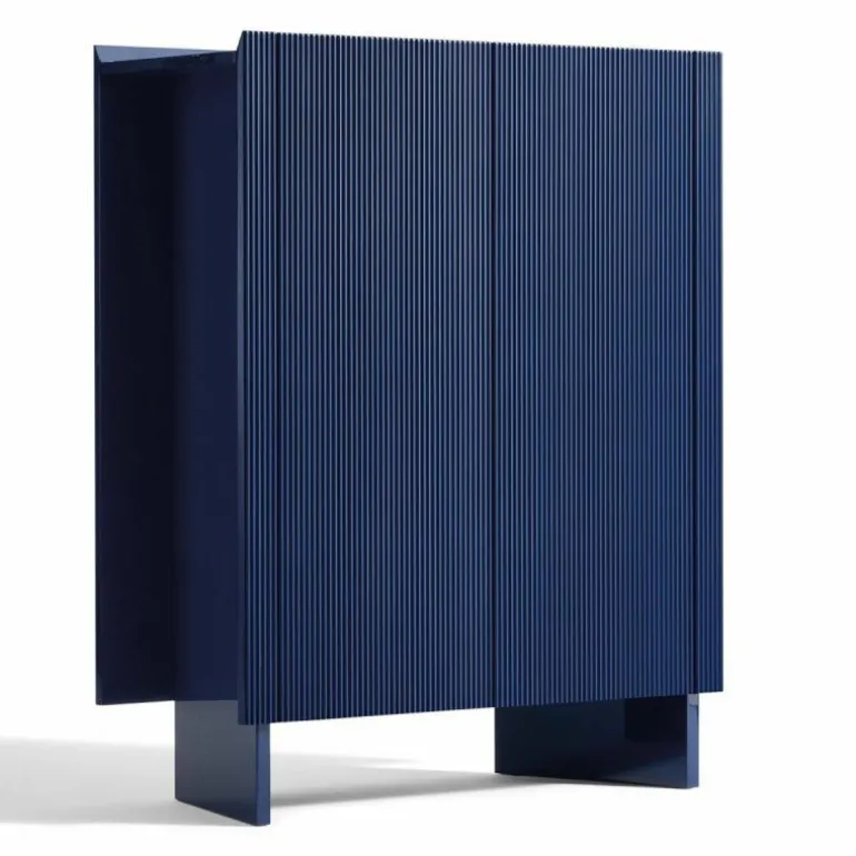 Gekenmerkt door zijn schuine poten en de eeuwenoude kunst van lakafwerking is de Hayama Opbergkast een excentriek ontwerp. Anders dan de opbergkast, is de barkast voorzien van een glanzende lak en een gegroefde structuur welke de kast voorziet van een eigentijdse uitstraling. De verticale groeven in de deuren vormen een bijzonder contrast met het schuin geplaatste onderstel. Deze kenmerken maken de kast het middelpunt van elke ruimte. Bestaande uit meerdere legplanken van transparant glas en glanzend gelakt MDF biedt de barkast een zee van ruimte voor het etaleren of opbergen van glaswerk, servies en drankflessen. Voor net dat vleugje extra luxe is het interieur verrijkt met een spiegel aan de achterzijde r