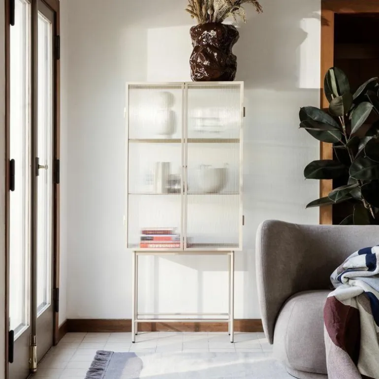 De Haze Vitrinekast is een product van Ferm Living. Voor het design van deze kast heeft Ferm Living samengewerkt met design duo Nikolaj en Kasper van Says Who. Zij zijn, net als Ferm Living, onderdeel van de nieuwe Scandinavische designbeweging. Ze respecteren namelijk de waarden van het traditionele Scandinavische design – eenvoud, minimalisme en functionaliteit – en vinden dit opnieuw uit zodat het past in de huidige tijd.