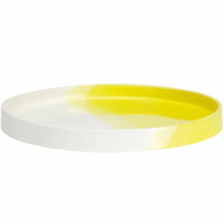 De tray is verkrijgbaar in de kleuren green en yellow en heeft een diameter van 35.5 centimeter. De rand van de tray is 3.5 centimeter hoog. Combineer de frisse kleuren met andere designs uit de Herringbone serie voor een passend geheel.