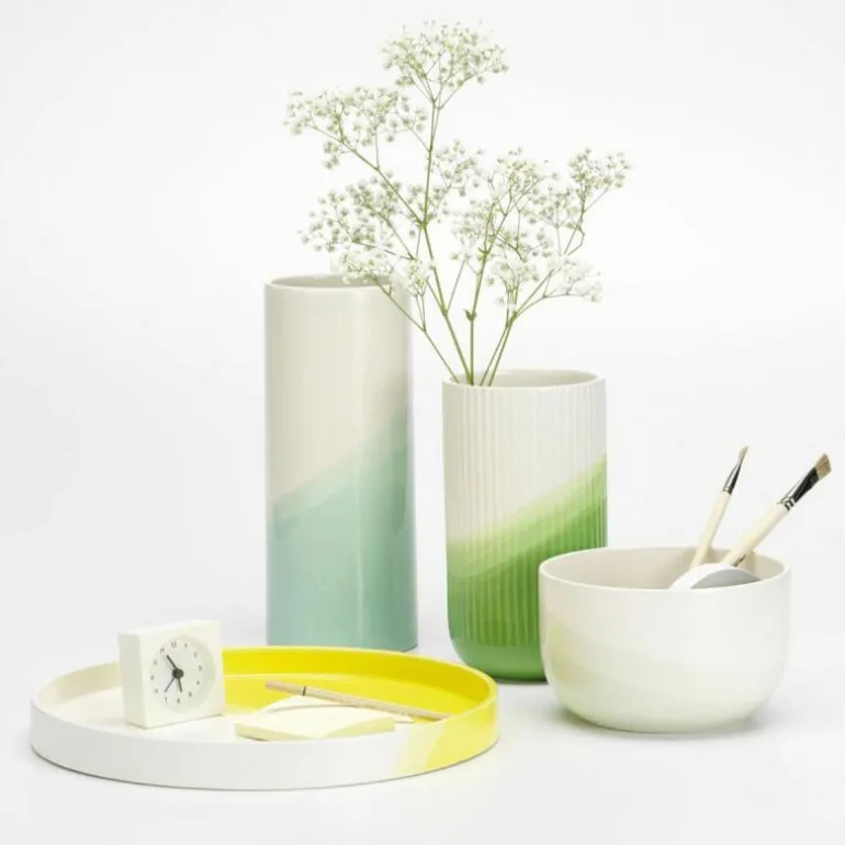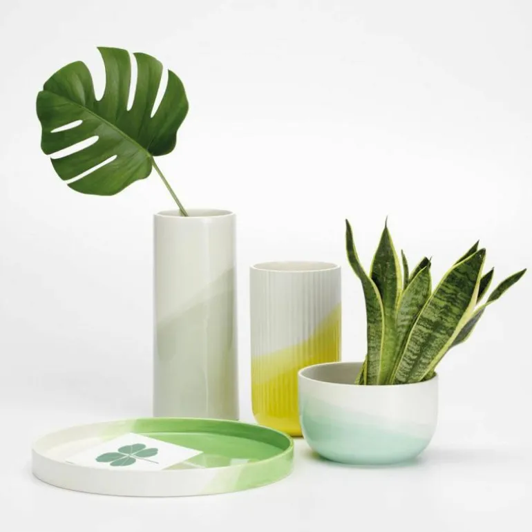 De vaas is zowel met een geribbeld oppervlak als een glad oppervlak te verkrijgen, in de kleuren green, yellow, sand en mint. Combineer deze frisse kleuren met de Trays en Bowls, voor een passend geheel.r