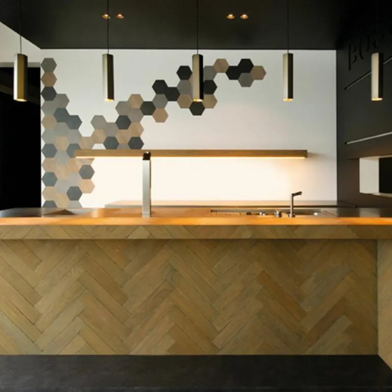 Naast deze hanglamp met een hoogte van 30 centimeter, bestaat de Hexo lampenserie uit een hanglamp van 20 centimeter hoog en uit meerdere wandlampen en plafondlampen. De lamp kan ook goed gecombineerd worden met Box, Docus en Ray lampenseries van Wever & Ducré.